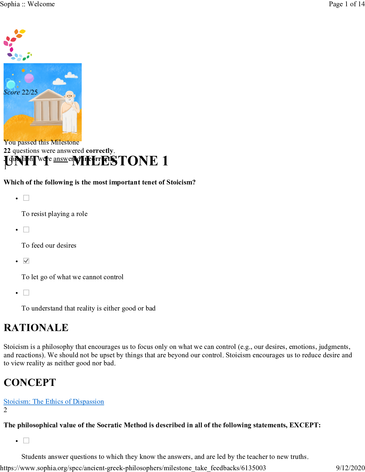 History > SOPHIA Milestone > Sophia Ancient Greek Philosopher Milestone Exam Study Guide Revisions, Updated Study Guide, Correctly Answered Questions, Test bank Questions and Answers with Explanations (latest Update), 100% Correct, Download to Score A (All)