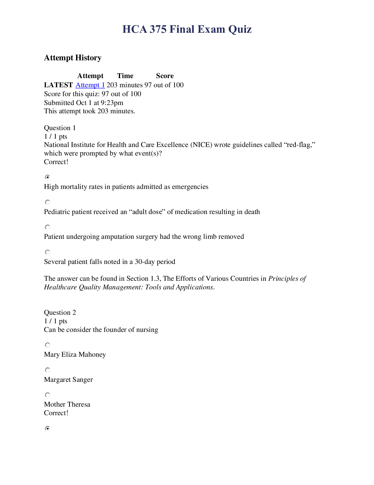 History > EXAM > HCA 375 Final Exam Quiz– 100/100 Score {LATEST 2020} (All)