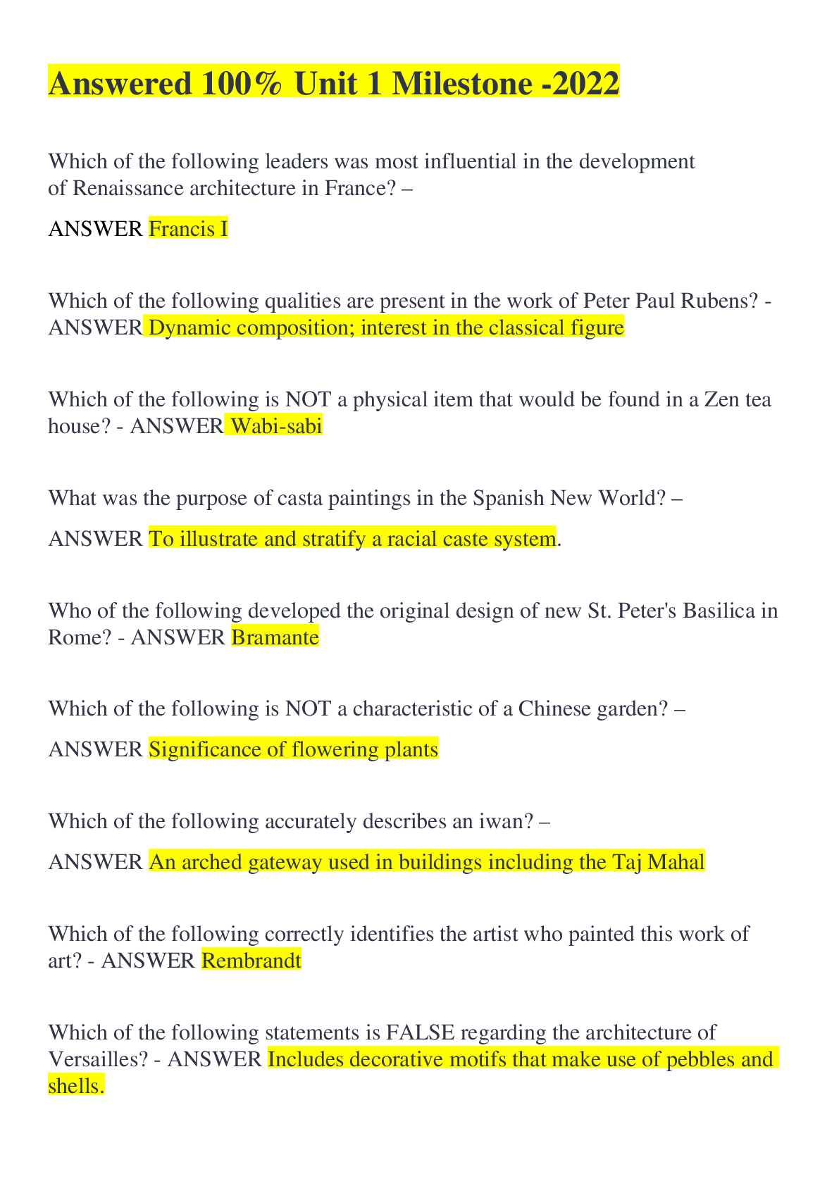 History > QUESTIONS & ANSWERS > Answered 100% Unit 1 Milestone -2022 (All)