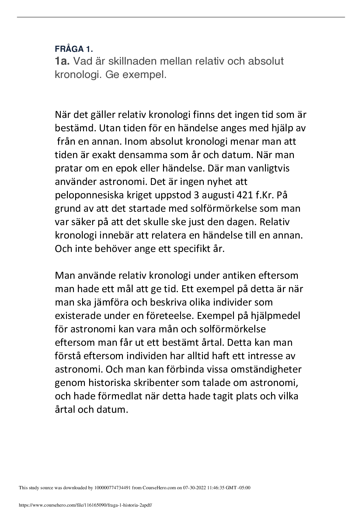 History > EXAM > Questions and Answers > Mid Sweden UniversityHISTORY 1Bfraga 1 historia 2a. (All)