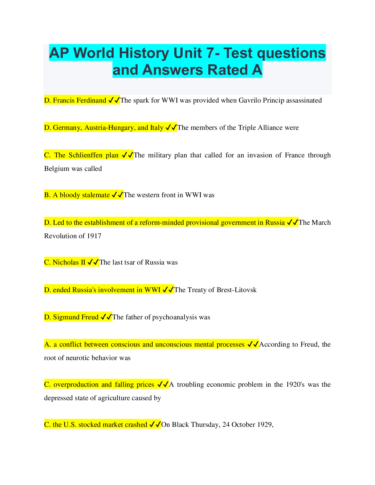 History > QUESTIONS & ANSWERS > AP World History Unit 7: Global Conflict Latest 2022 Already Passed (All)