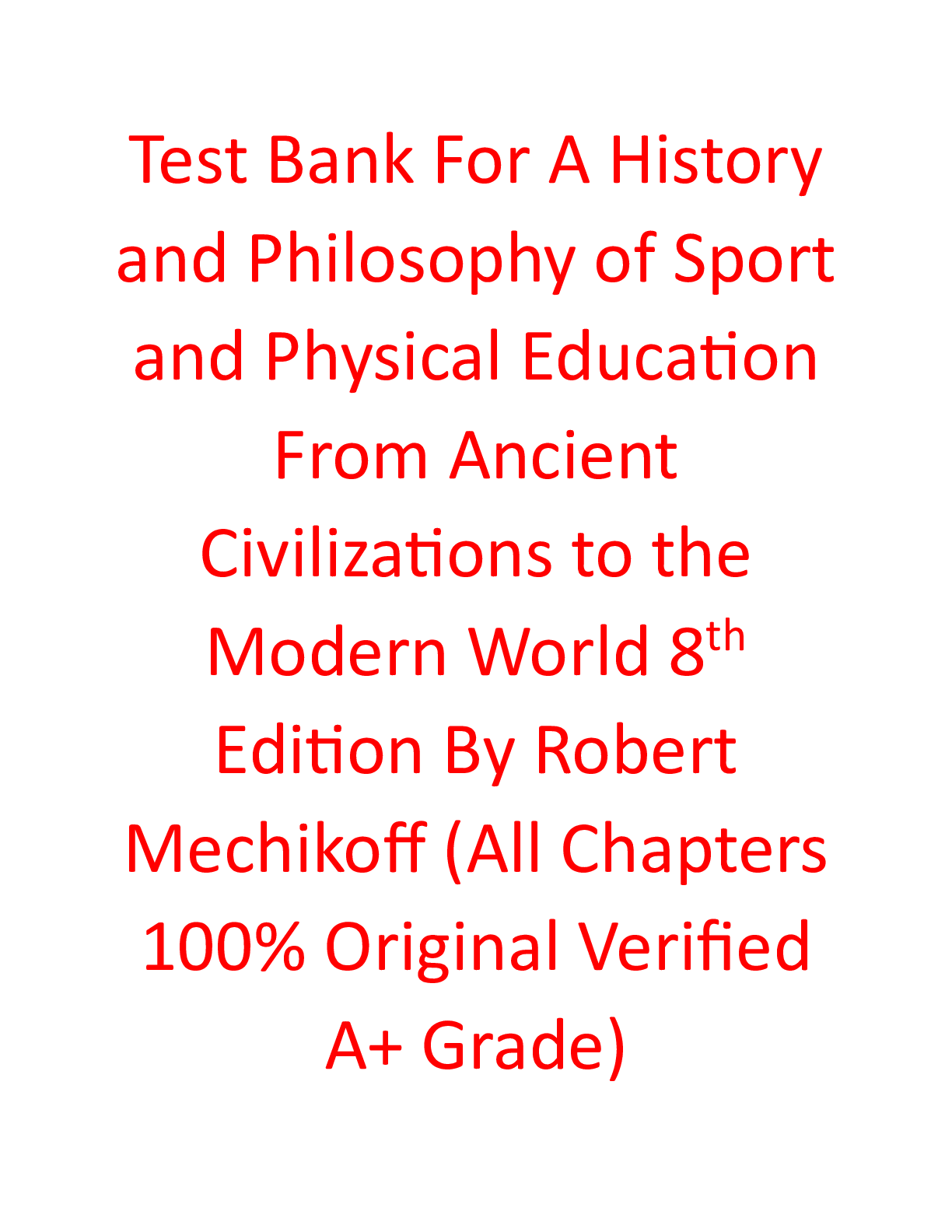 History > TEST BANKS > Test Bank For A History and Philosophy of Sport and Physical Education From Ancient Civilizations to the Modern World 8th Edition By Robert Mechikoff (All Chapters 100% Original Verified A+ Grade) (All)