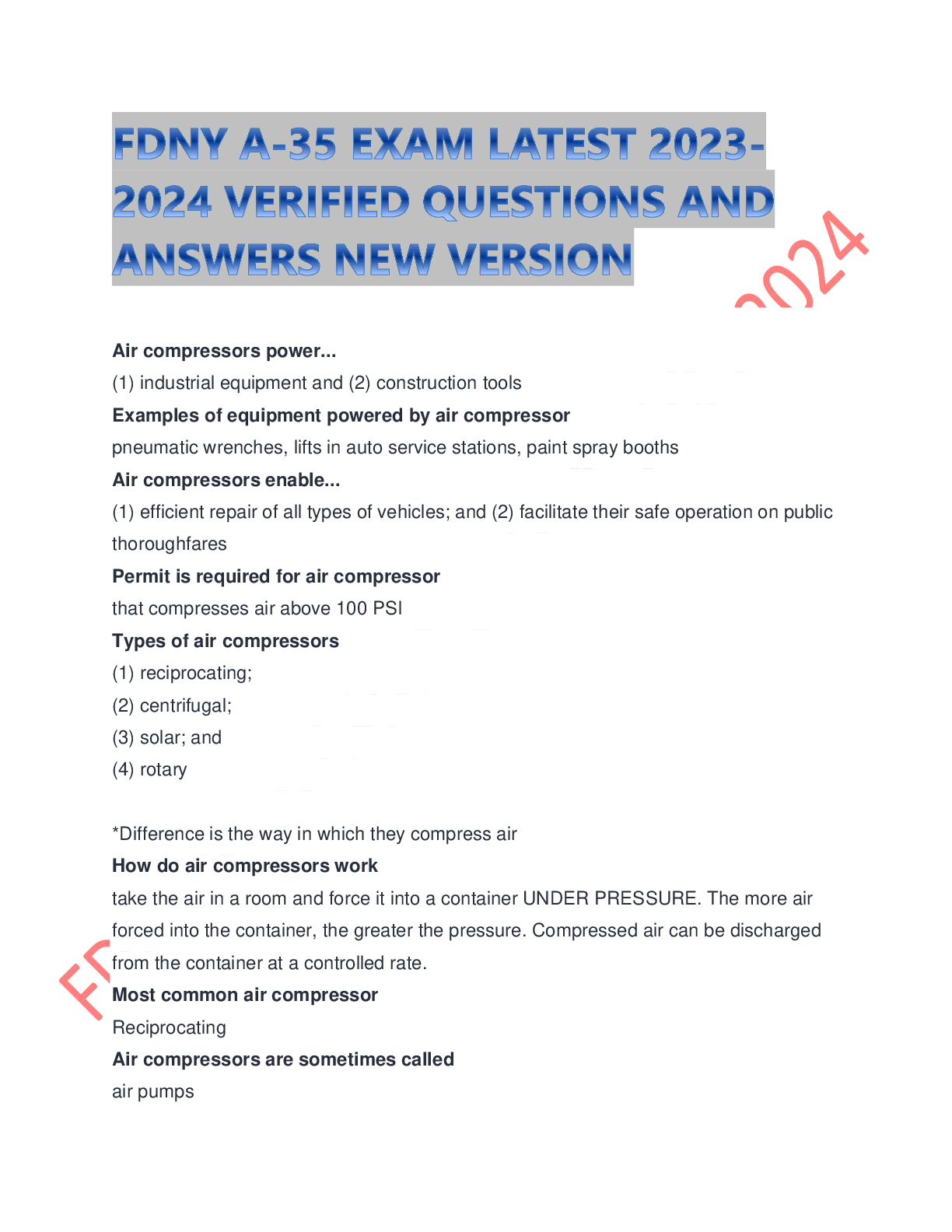 Artificial Intelligence > EXAM > FDNY A-35 EXAM LATEST 2023-2024 VERIFIED QUESTIONS AND ANSWERS NEW VERSION (All)