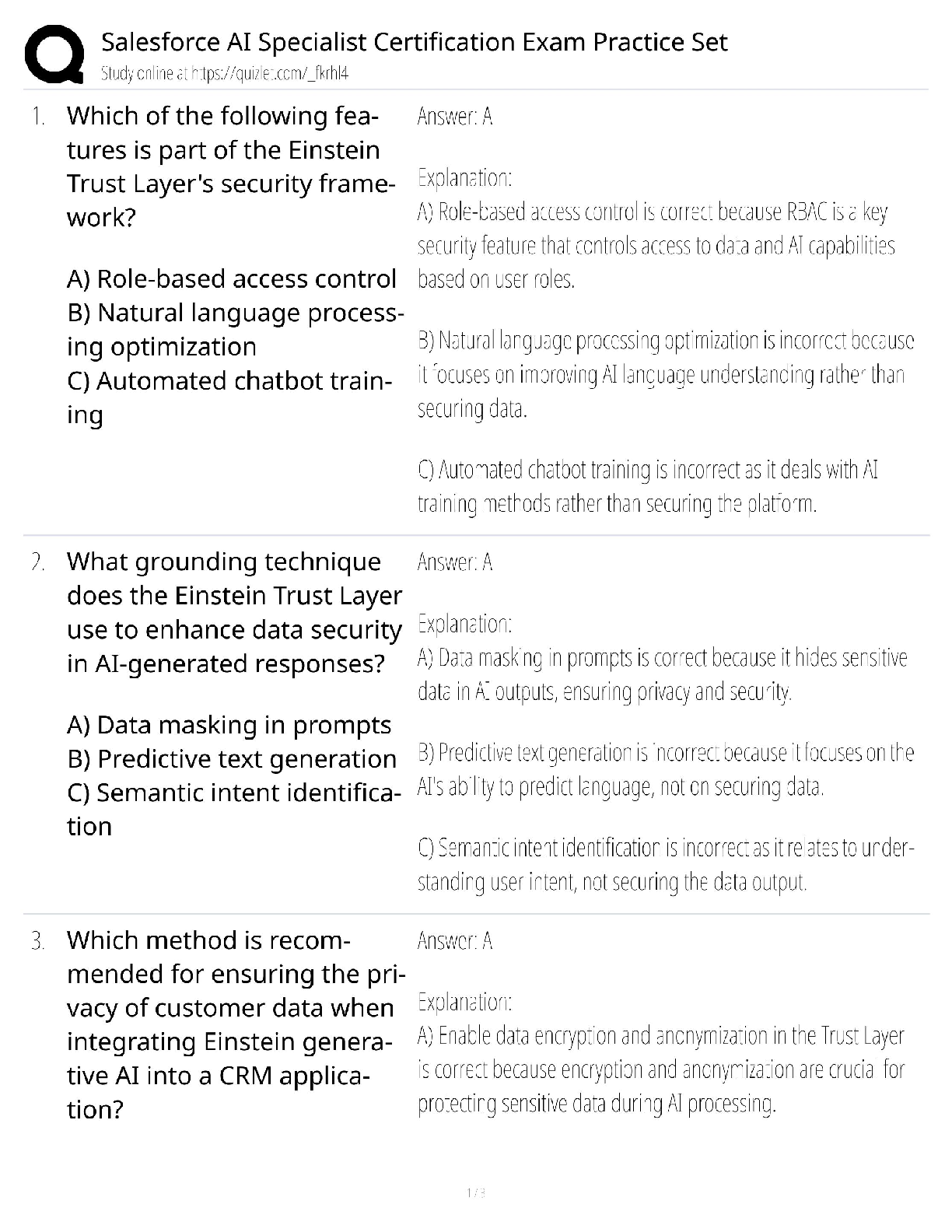Artificial Intelligence > QUESTIONS & ANSWERS > Salesforce AI Specialist Certification / AI Associate Exam Prep / 2026 Update / Practice Questions & Answers (All)