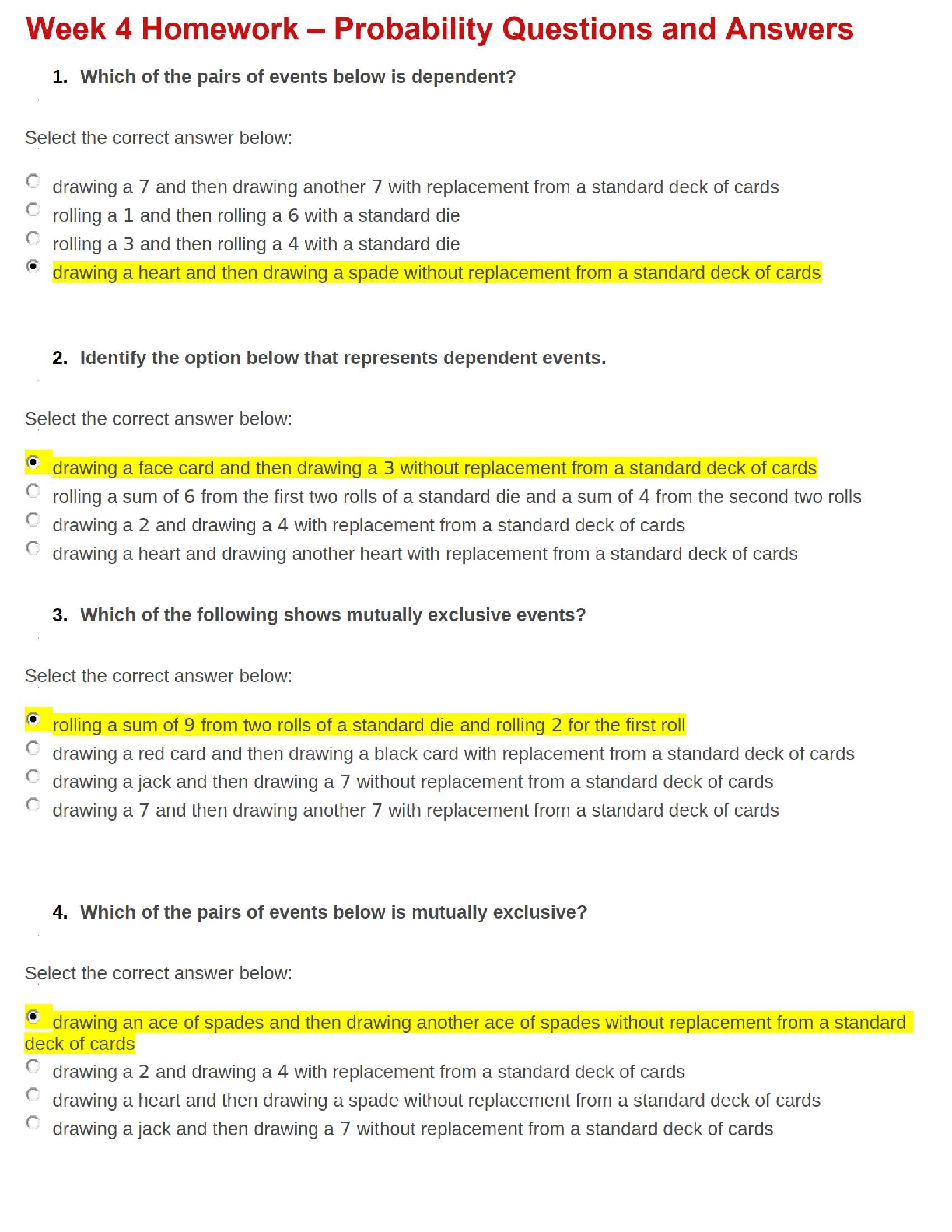 Probability and Statistics > QUESTIONS & ANSWERS > 📄 Week 4 Homework – Probability Questions (All)