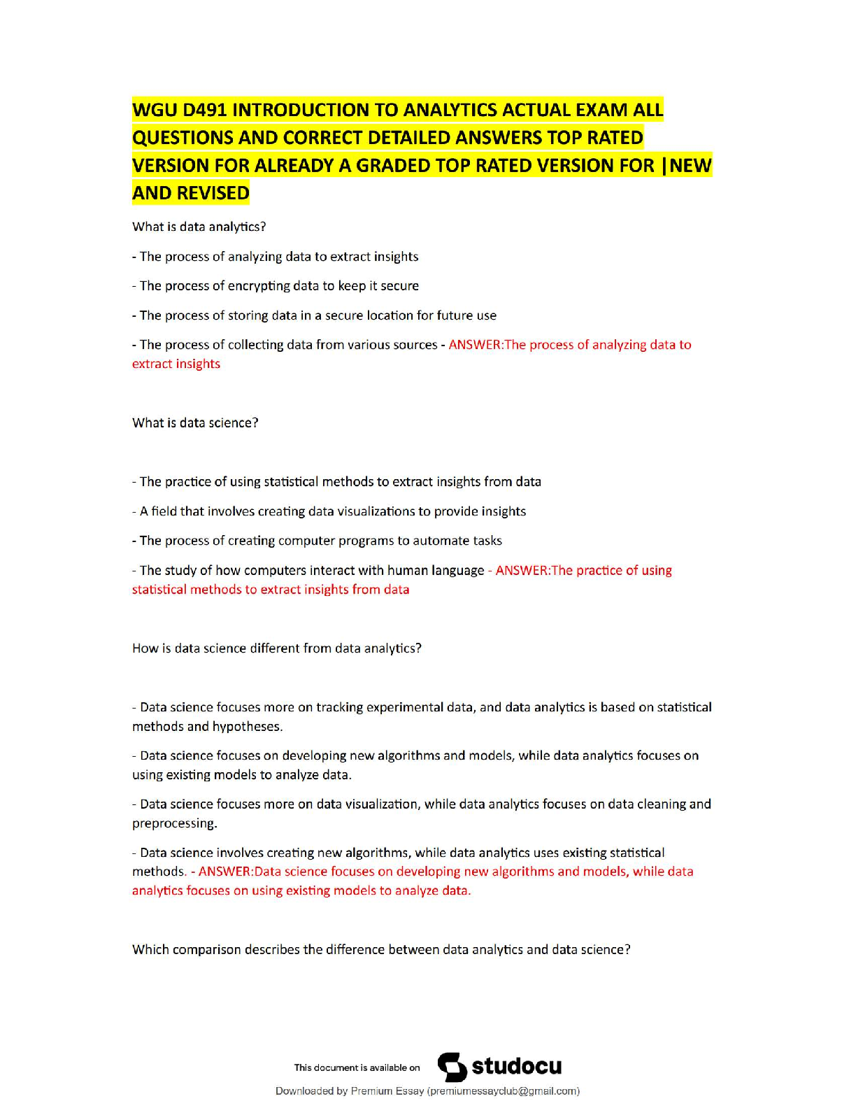 DATA ANALYSIS > QUESTIONS and ANSWERS > WGU D491 Final Exam Guide – Comprehensive Data Analytics Q&A (2025) (All)