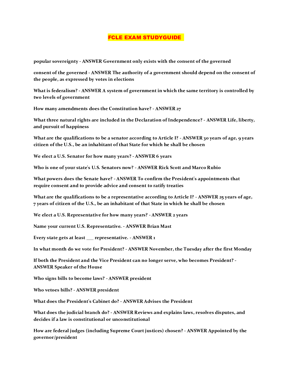 Law > QUESTIONS & ANSWERS > FCLE EXAM STUDYGUIDE (All)