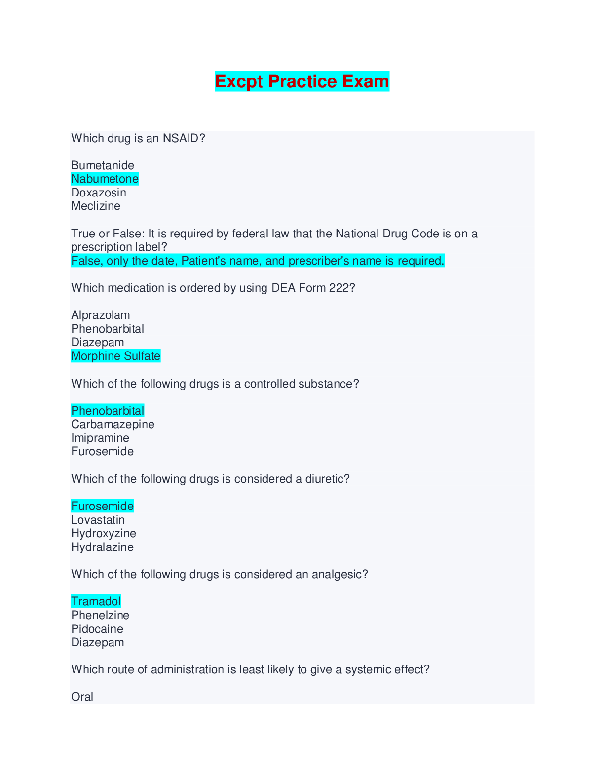 Law > EXAM > Excpt Practice Exam - Questions and Answers (All)