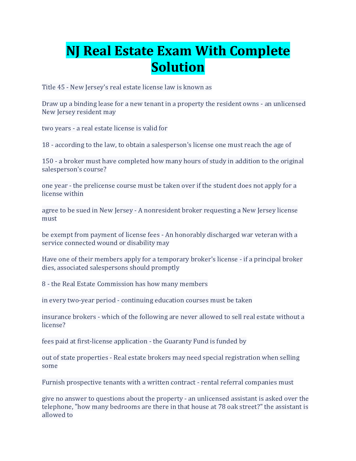 Law > EXAM > NJ Real Estate Exam With Complete Solution (All)