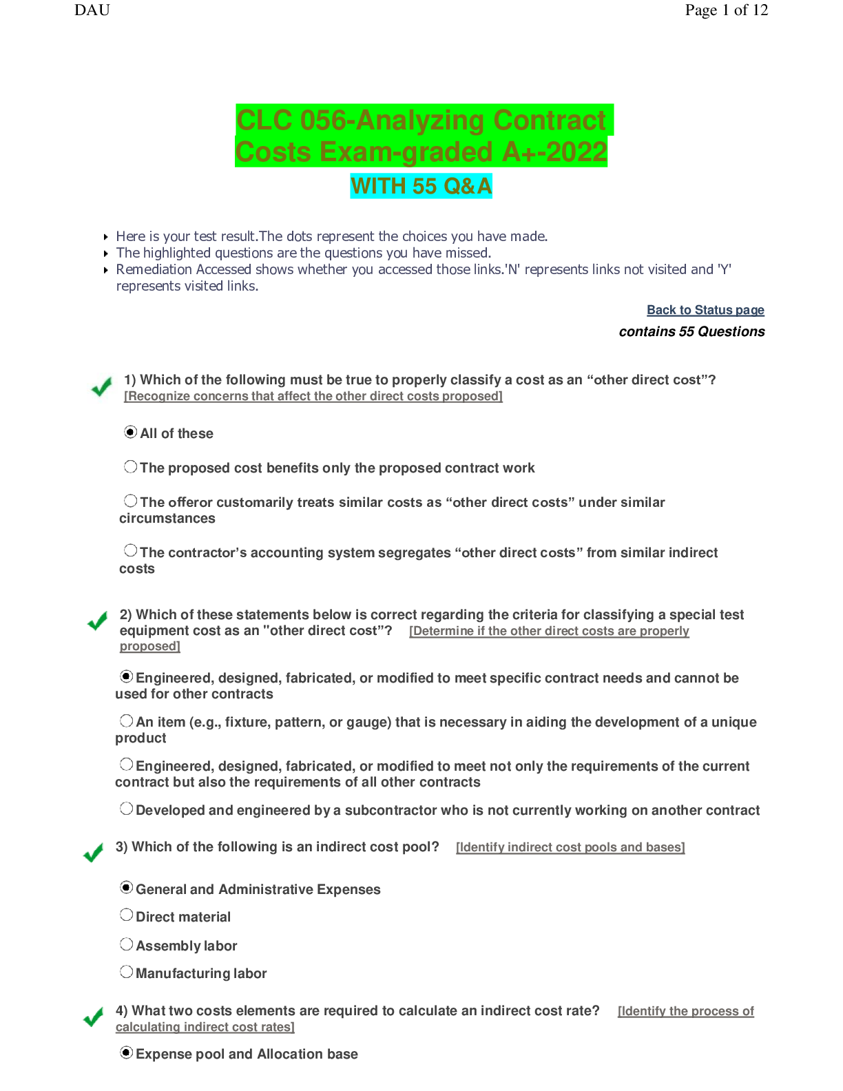 Law > EXAMs > CLC 056-Analyzing Contract Costs Exam-graded A+-2022 (All)