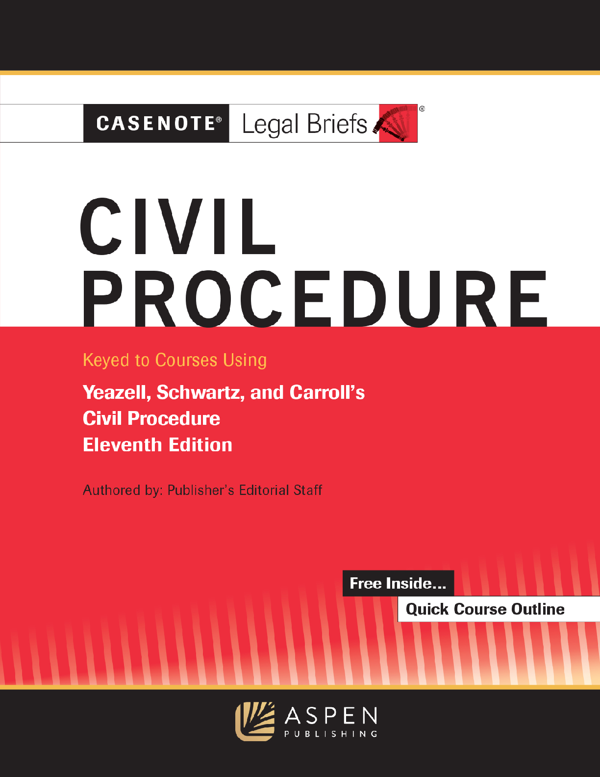 Law > eBook-PDF > eBook PDF Civil Procedure Keyed to Yeazell Schwartz and Carroll's 11th Edition By Casenote Legal Briefs (All)