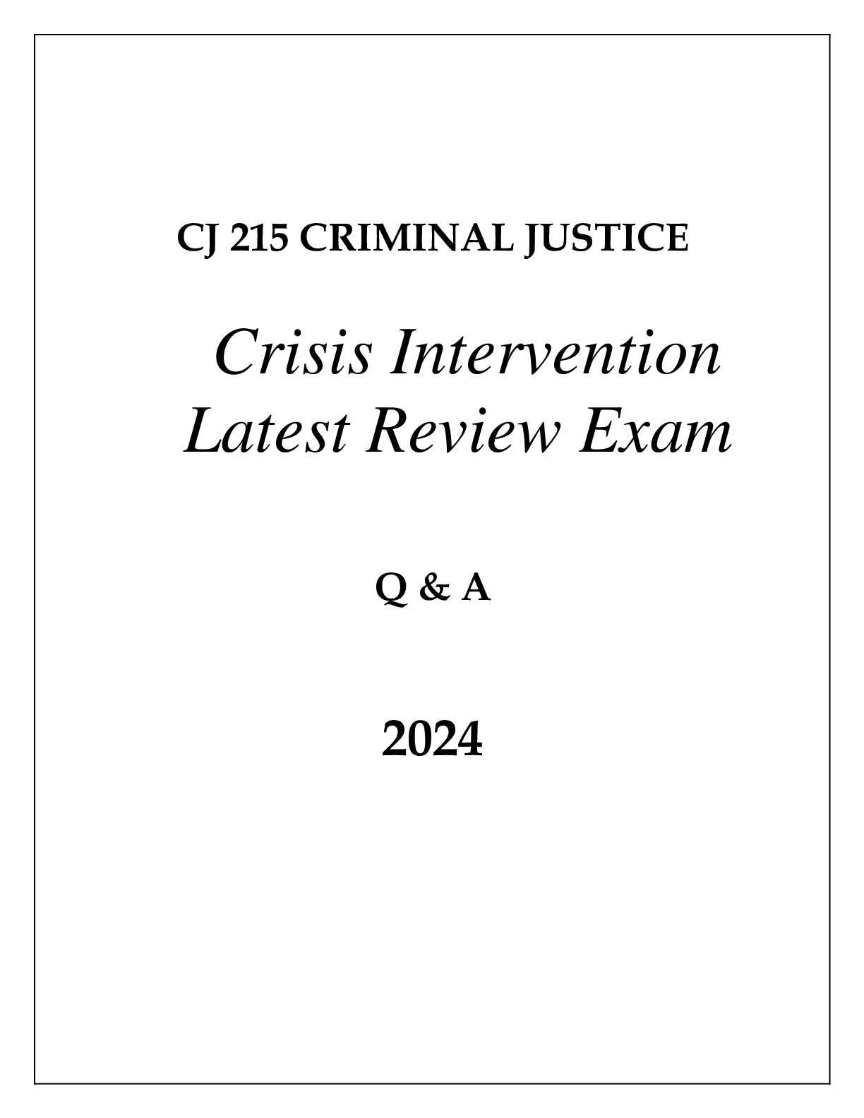 Law > EXAM PROCTORED > CJ 215 CRIMINAL JUSTICE (CRISIS INERVENTION) LATEST REVIEW FINAL EXAM Q & A 2024 (All)