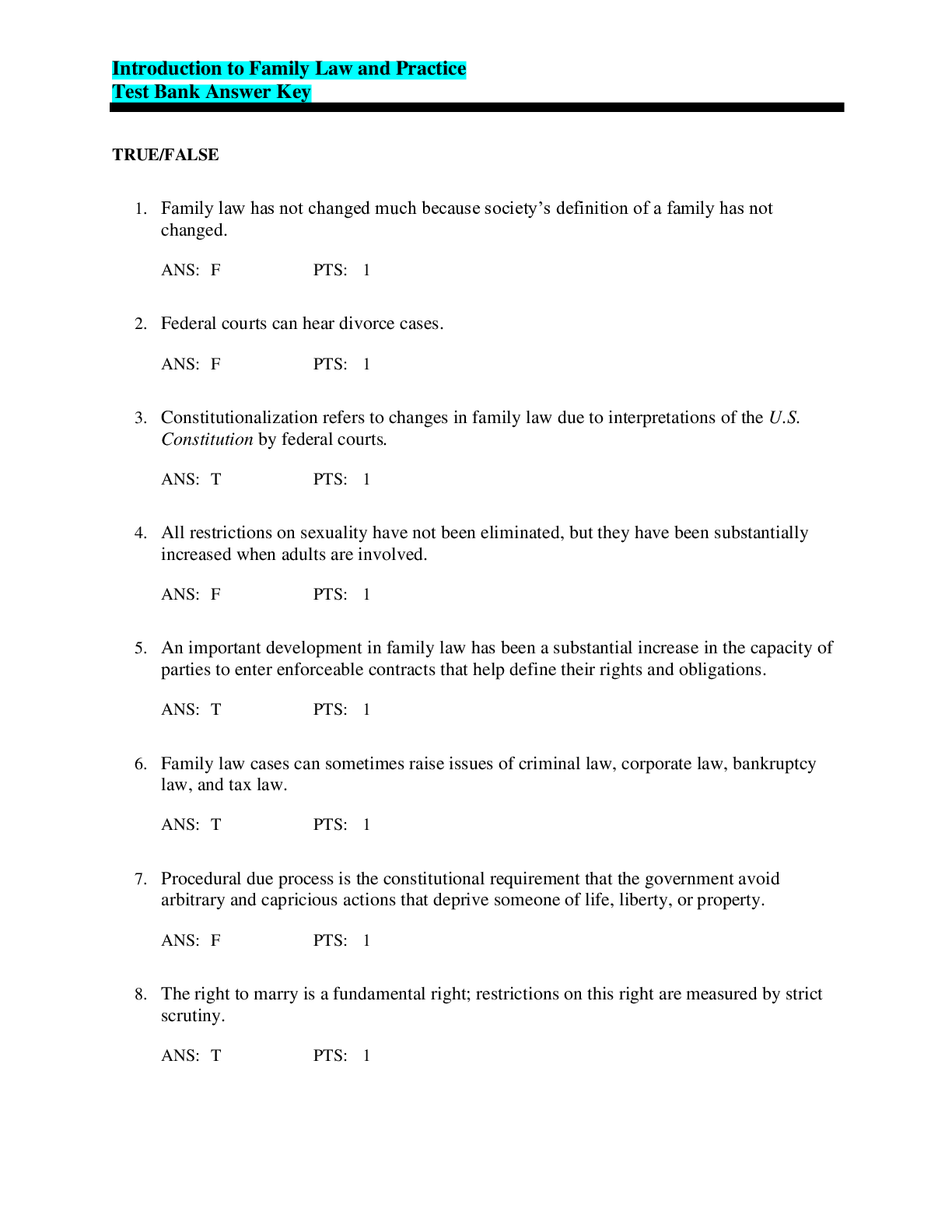 Law > TEST BANKS > Family Law, 6e William P. Statsky (Test Bank) (All)
