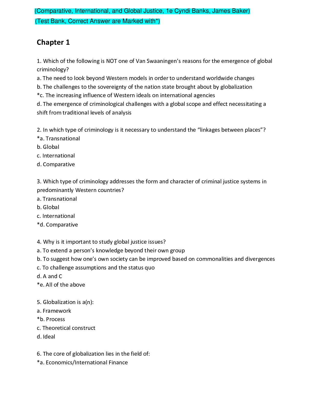 Law > TEST BANKS > Comparative, International, and Global Justice, 1e Cyndi Banks, James Baker (Test Bank) (All)
