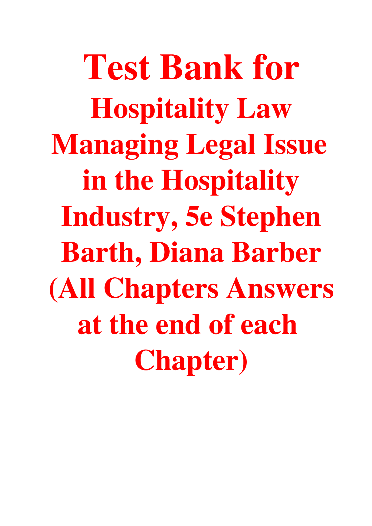 Law > TEST BANKS > Test Bank For Hospitality Law Managing Legal Issues in the Hospitality Industry 5th Edition By Stephen Barth, Diana Barber (All)