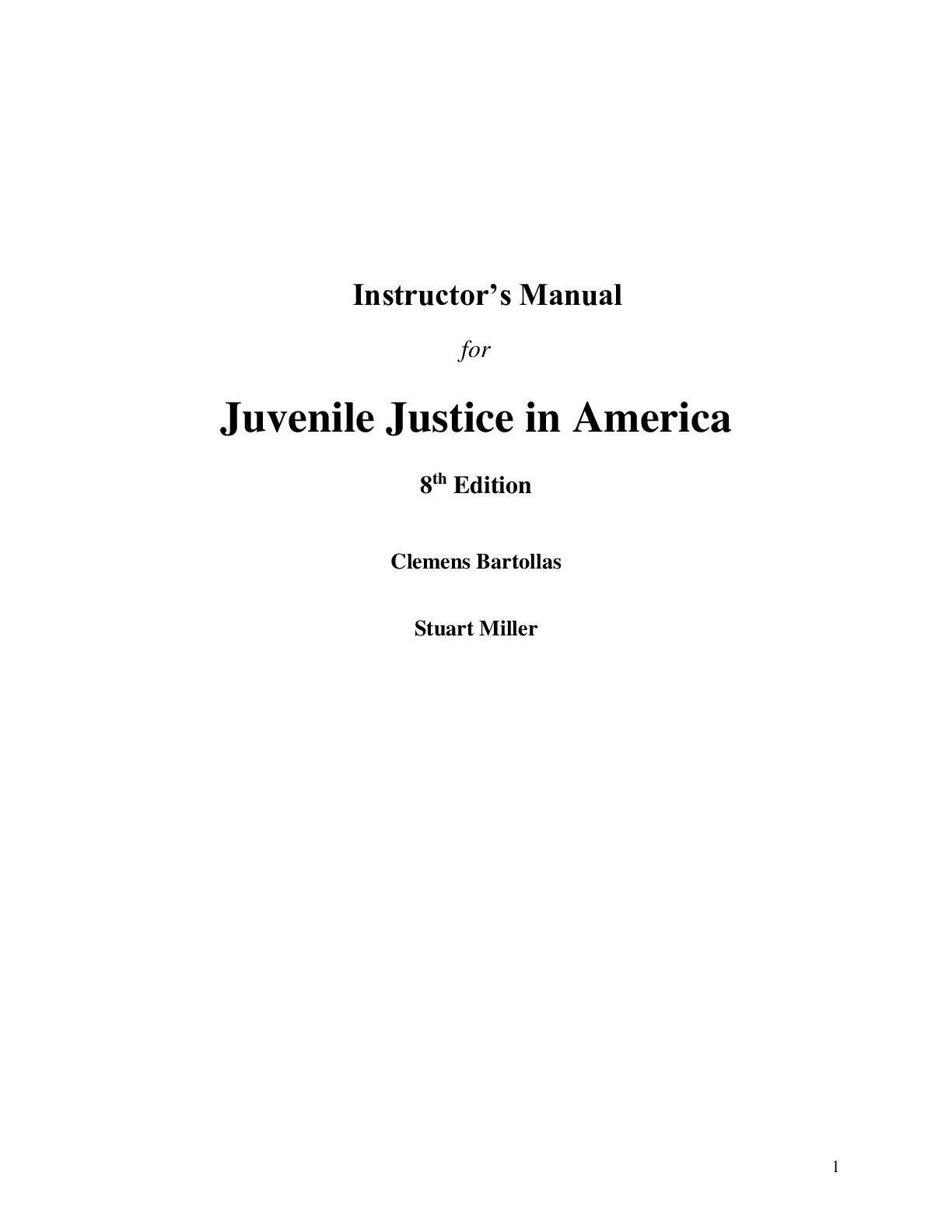 Law > INSTRUCTOR MANUALS > Instructor Manual For Juvenile Justice In America 8th Edition By Clemens Bartollas, Stuart Miller (All Chapters, 100% Original Verified, A+ Grade) (All)