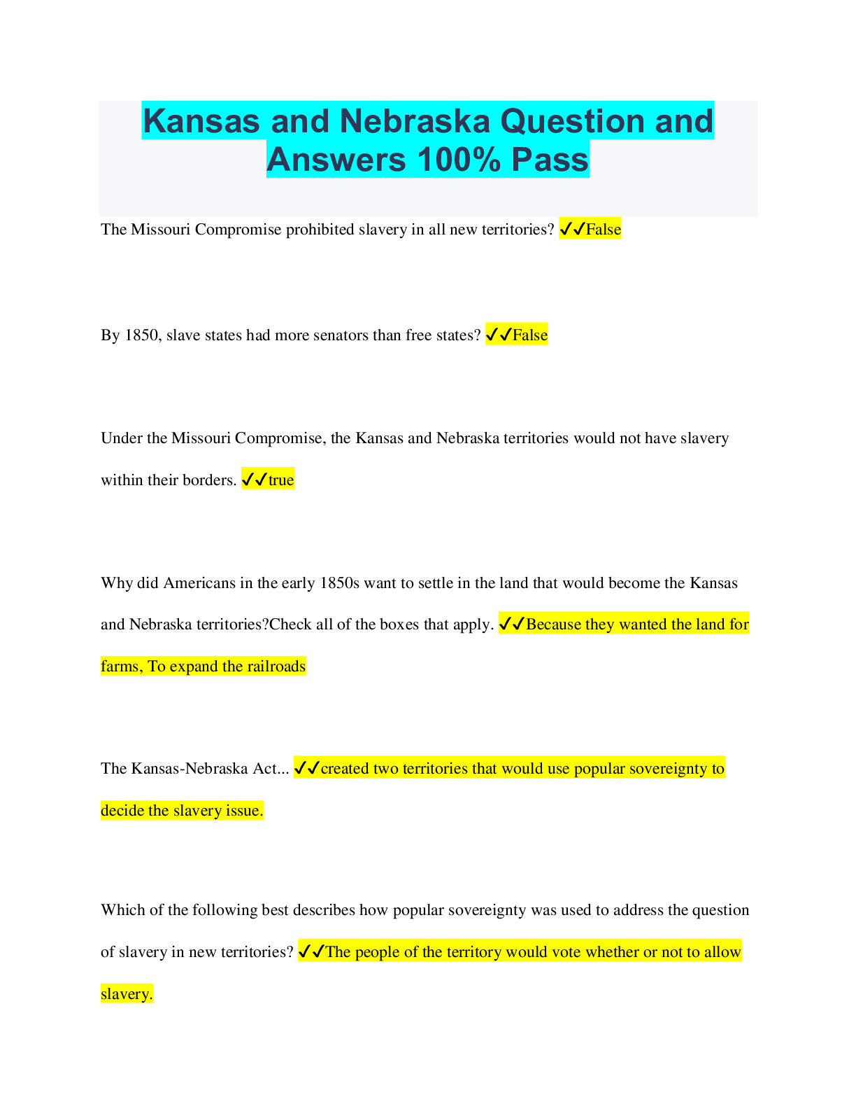 Law > QUESTIONS & ANSWERS > Kansas and Nebraska Question and Answers 100% Pass (All)