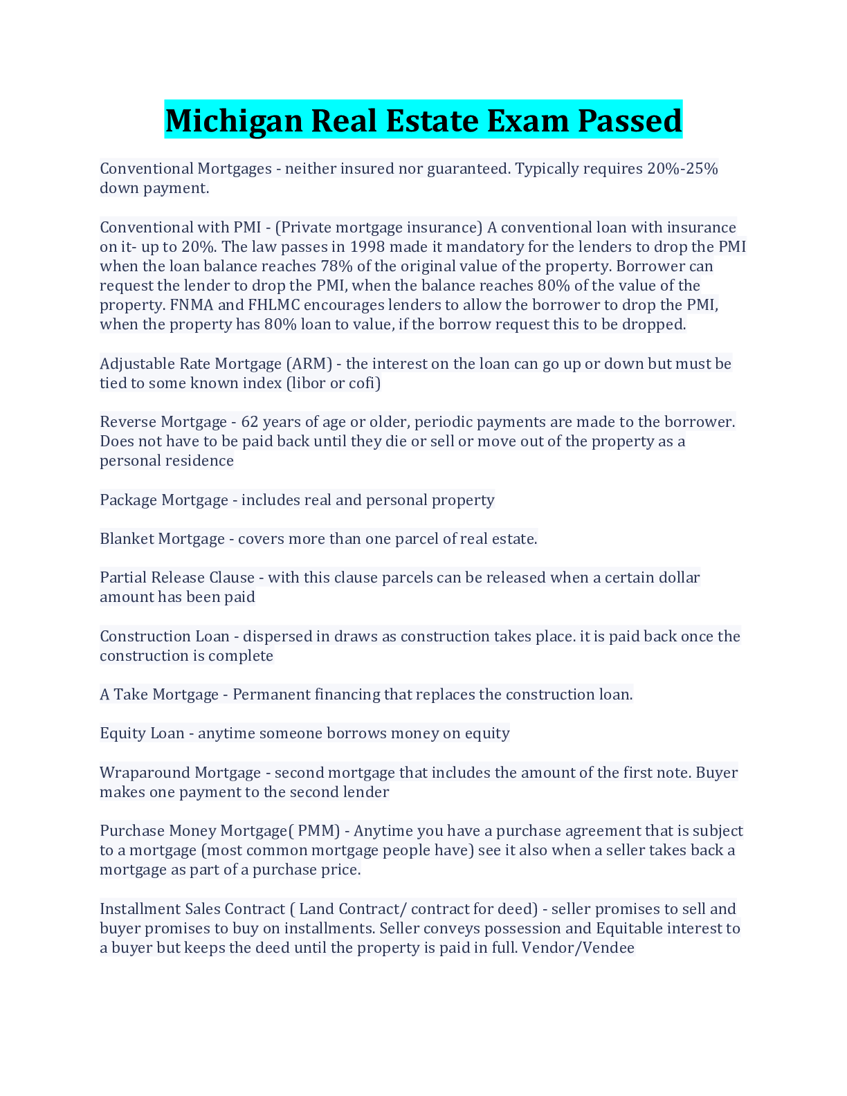 Law > EXAM > Michigan Real Estate Exam Passed (All)