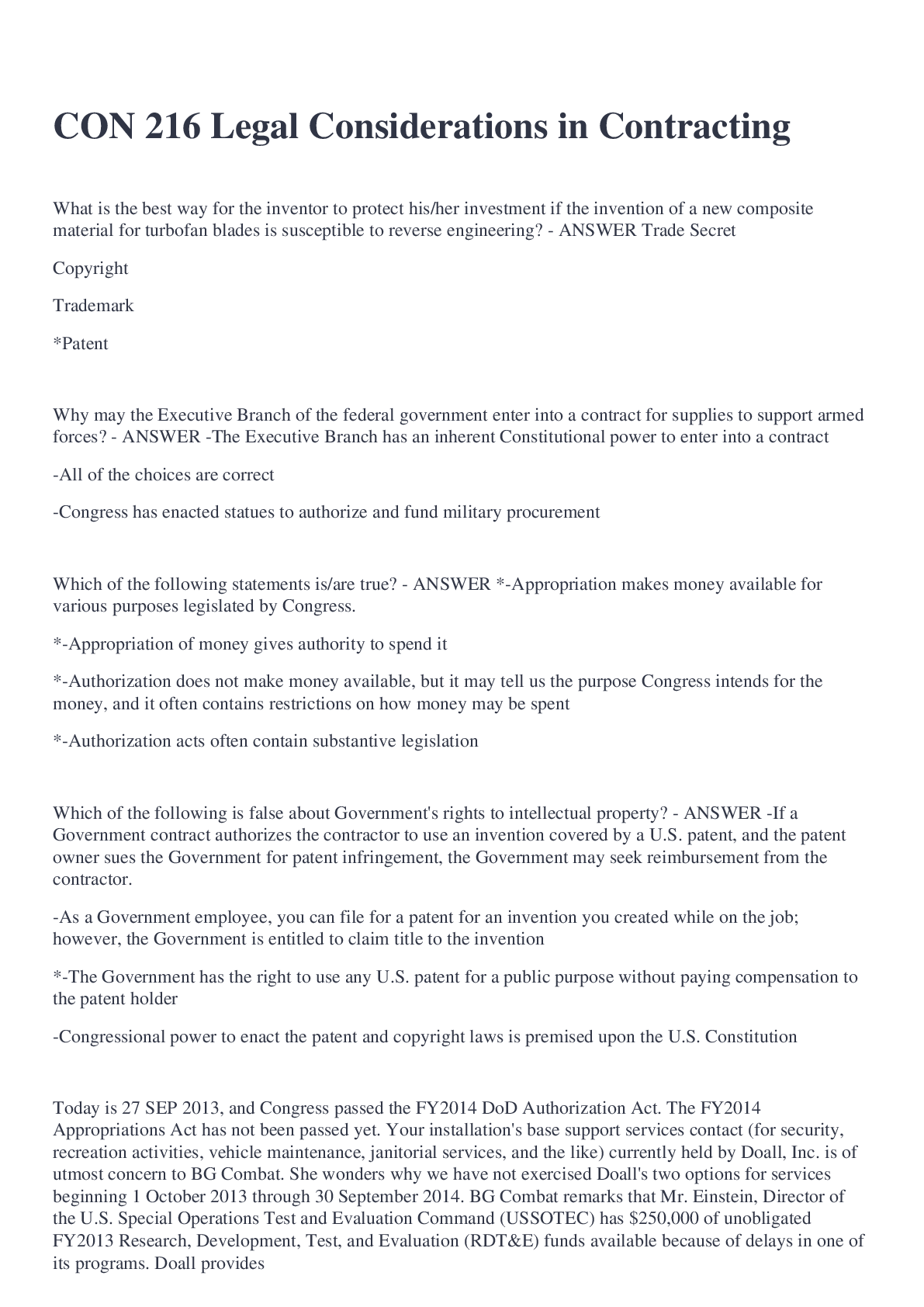 Law > EXAM > CON 216 Legal Considerations in Contracting with complete answers (All)