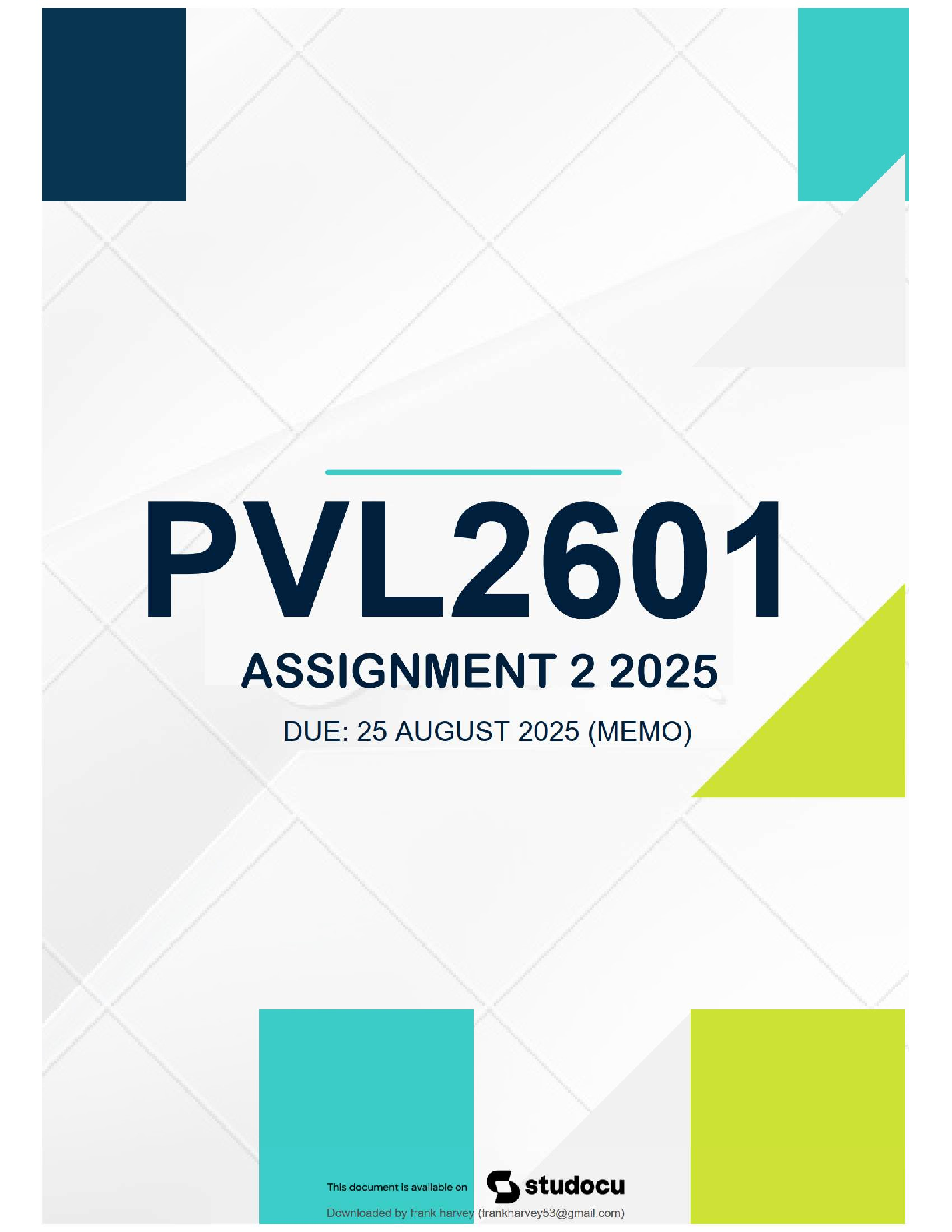 Law > QUESTIONS & ANSWERS > PVL2601 Assignment 2 Memo / Antenuptial Contracts Legal Advice / Score 100% / 2025 Update (All)