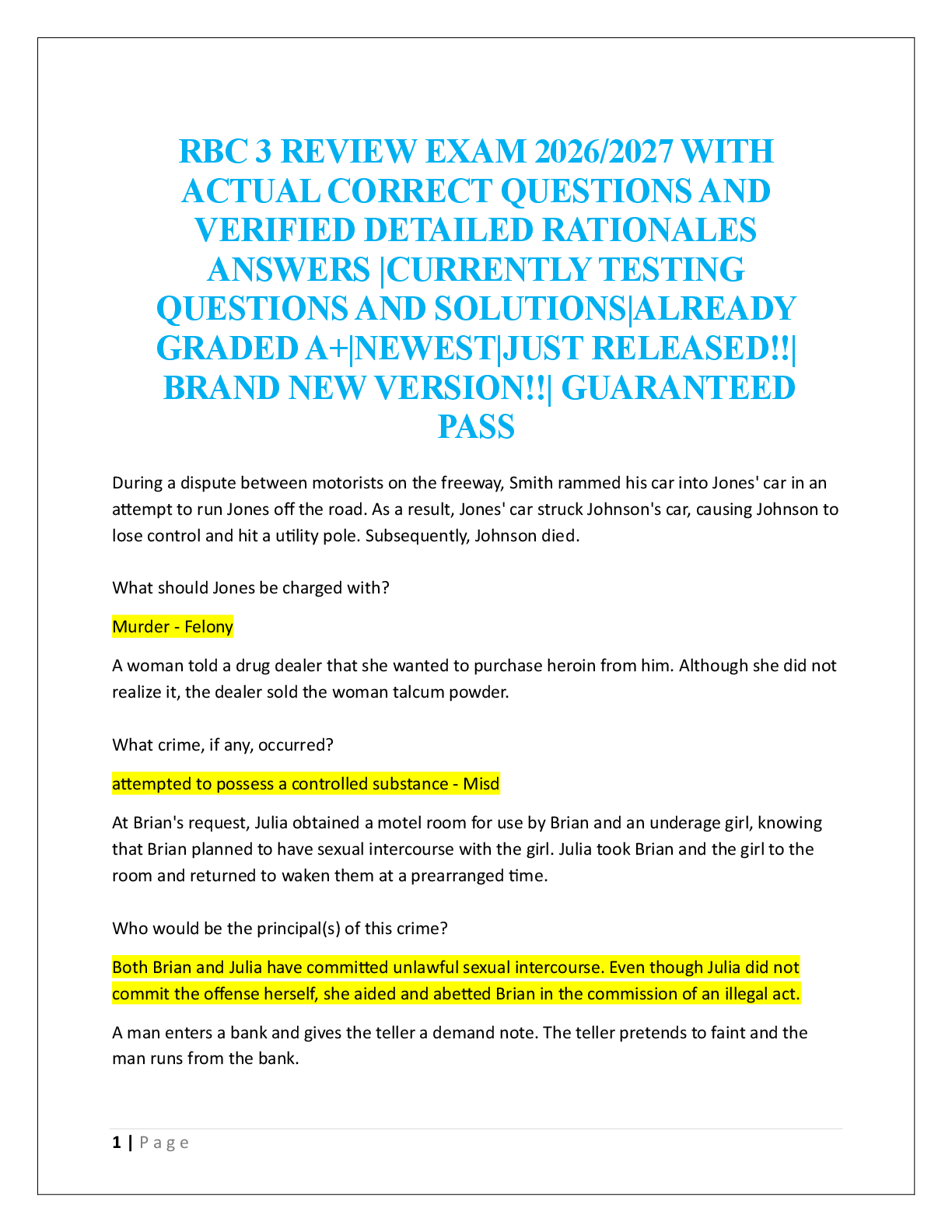 Law > EXAM > RBC 3 REVIEW EXAM 2026/2027 WITH ACTUAL CORRECT QUESTIONS AND VERIFIED DETAILED RATIONALES ANSWERS |CURRENTLY TESTING QUESTIONS AND SOLUTIONS|ALREADY GRADED A+|NEWEST|JUST RELEASED!!| BRAND NEW VERSION!!| GUARANTEED PASS (All)