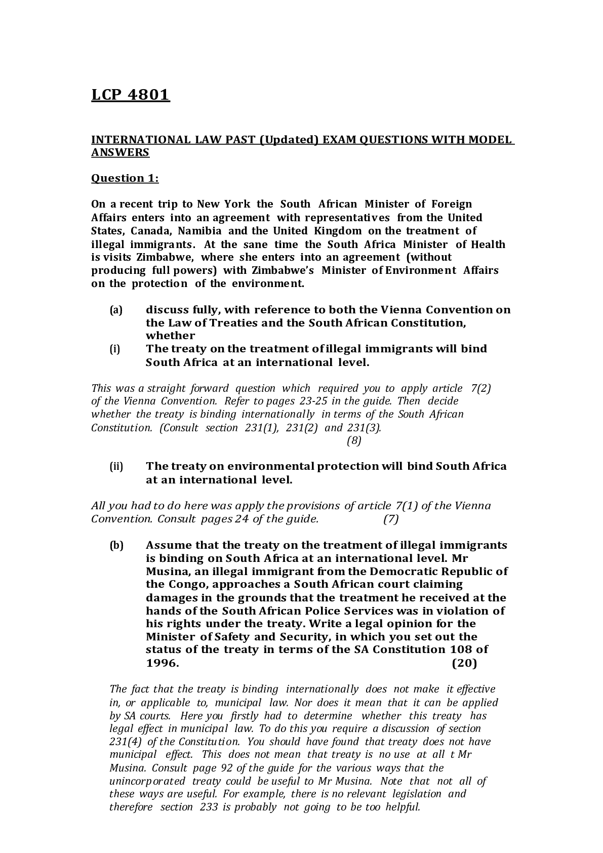 Law > EXAM > LCP 4801 INTERNATIONAL LAW PAST (Updated) EXAM QUESTIONS WITH MODEL ANSWERS (All)
