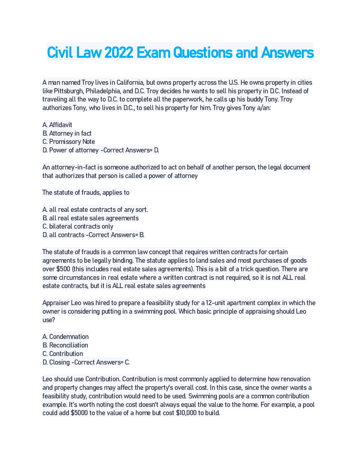 Law > EXAM > Civil Law 2022 Exam Questions and Answers (All)