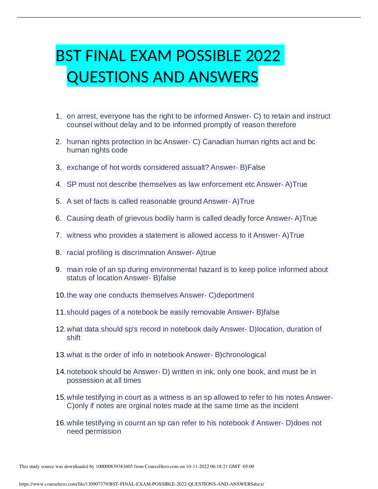 Law > EXAM > South University, Savannah LAW MISC BST FINAL EXAM POSSIBLE 2022/2023 QUESTIONS AND ANSWERS (All)