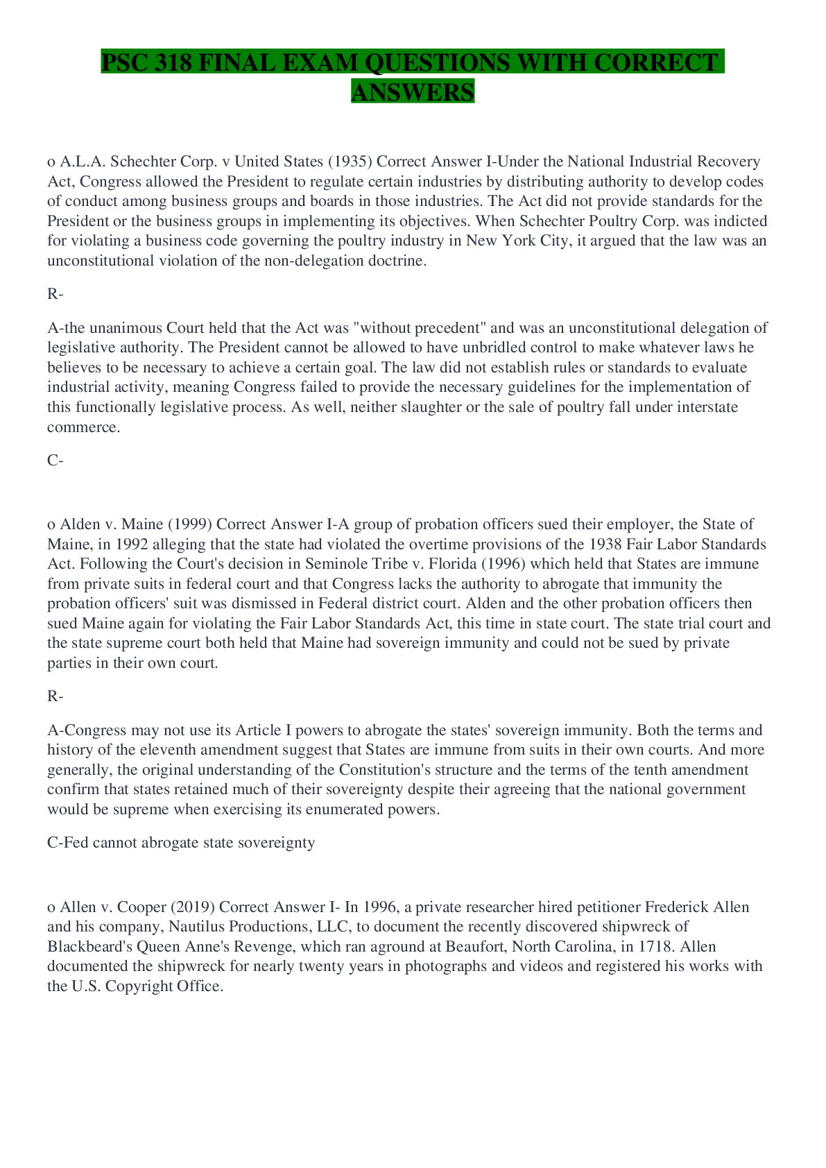 Law > QUESTIONS & ANSWERS > PSC 318 FINAL EXAM QUESTIONS WITH CORRECT ANSWERS (All)