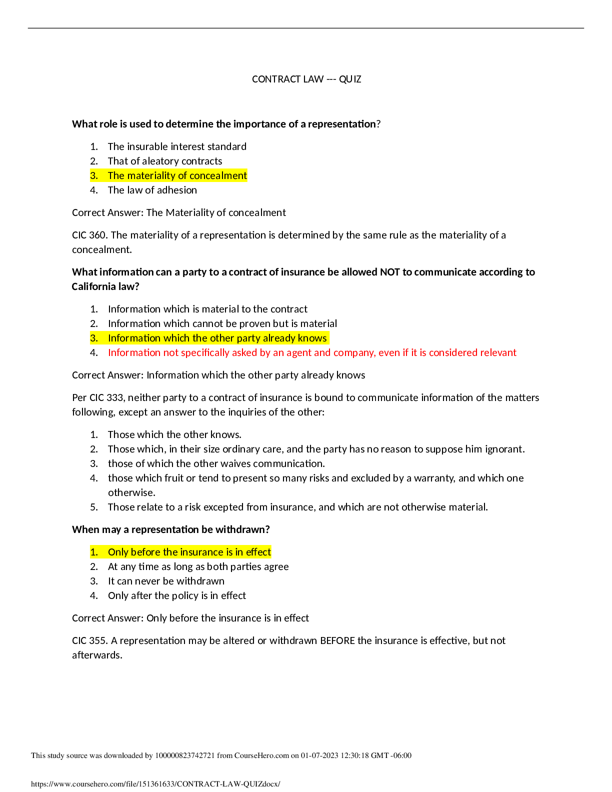 Law > QUESTIONS & ANSWERS > Penn Foster College: CONTRACT LAW --- QUIZ (All)