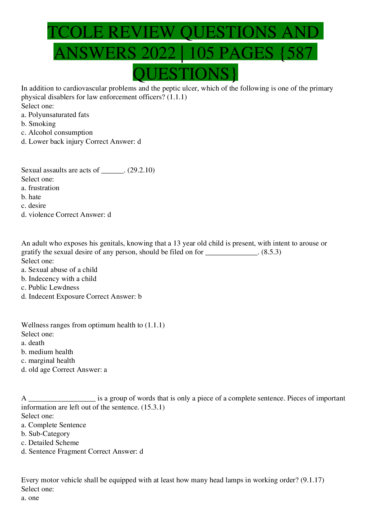 Law > EXAM > TCOLE (Master Study Guide) Questions And Answers TestBank (All)