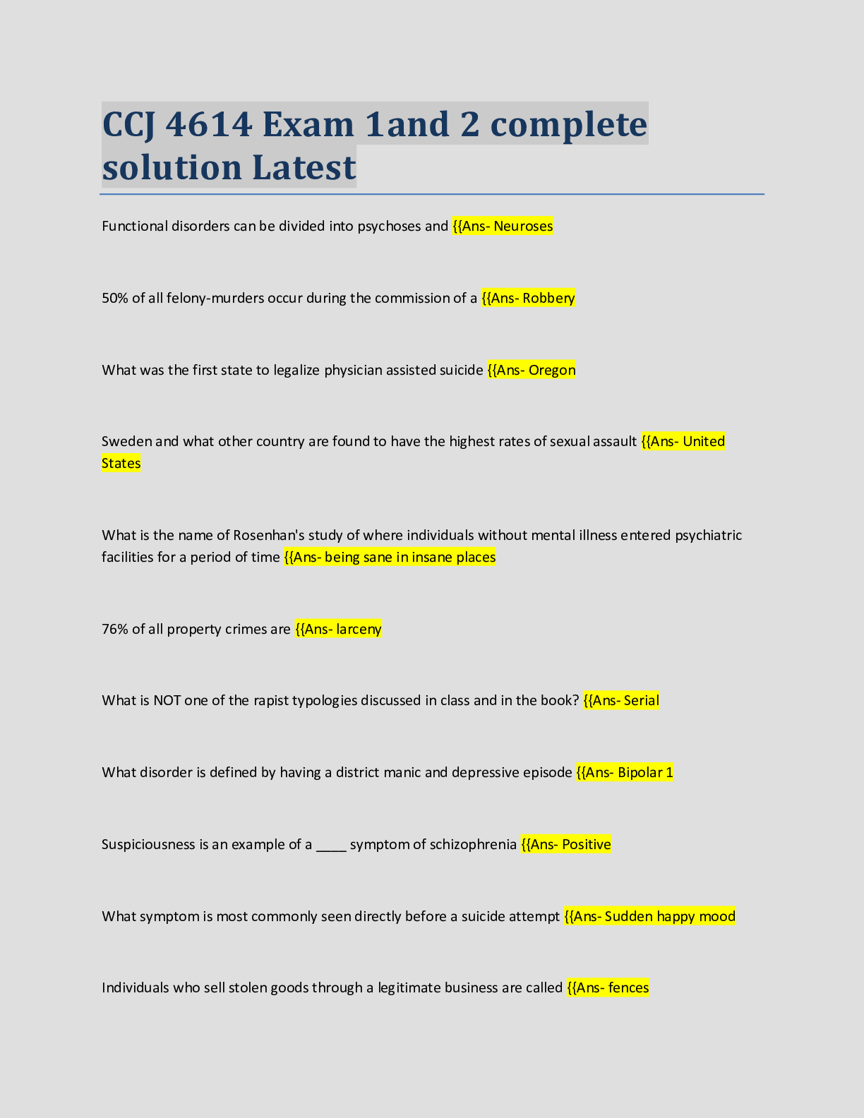Law > EXAM > CCJ 4614 Exam 1and 2 complete solution Latest (All)