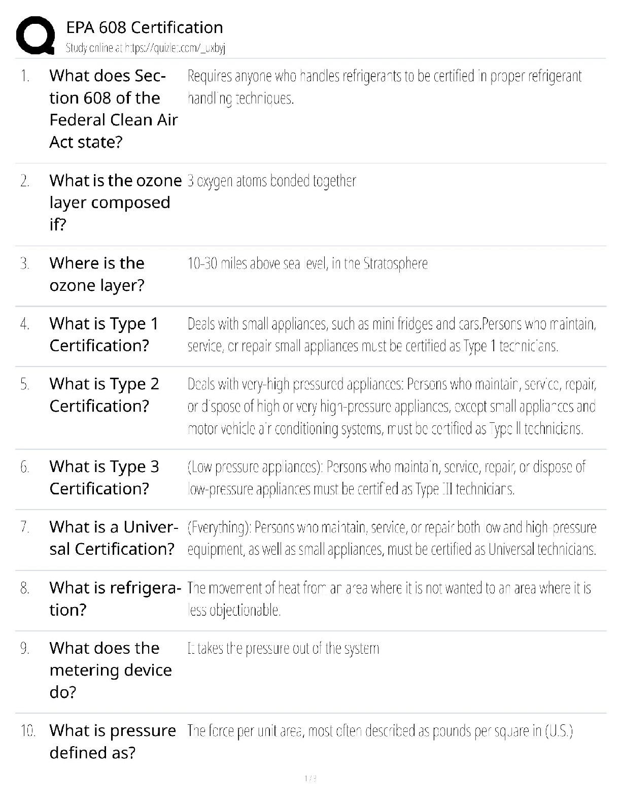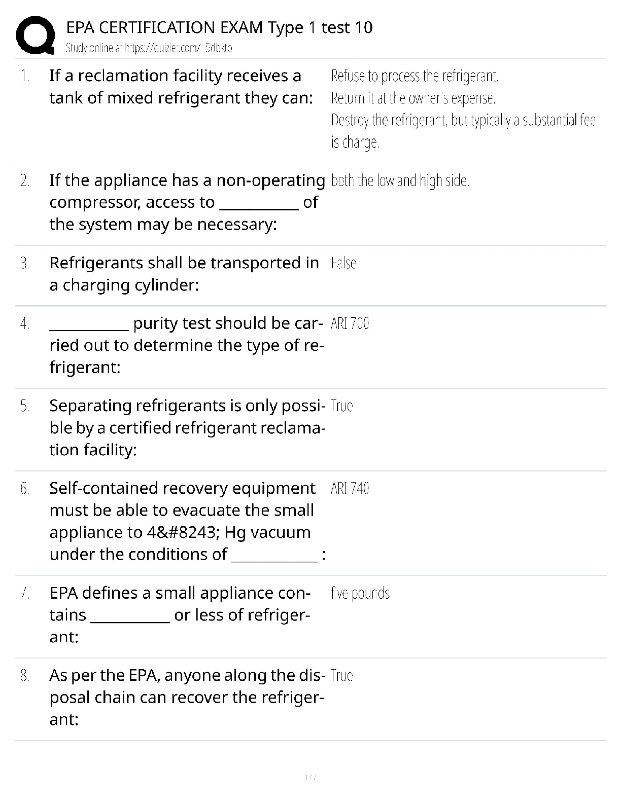Emergency Preparedness & Management > QUESTIONS & ANSWERS > EPA 608 Certification Exam / Universal Technician Test / 2026 Update / Practice Questions & Study Guide (All)