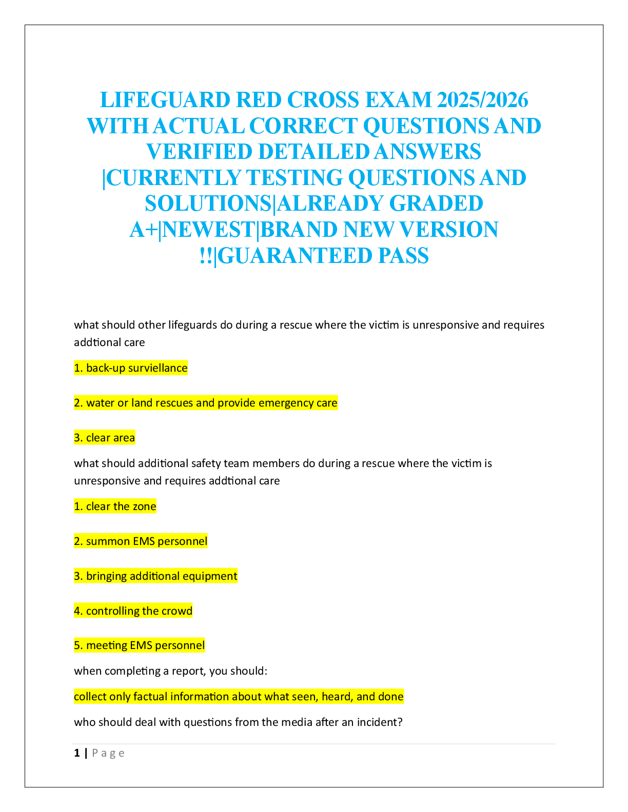 Emergency Preparedness & Management > EXAM > LIFEGUARD RED CROSS EXAM (All)