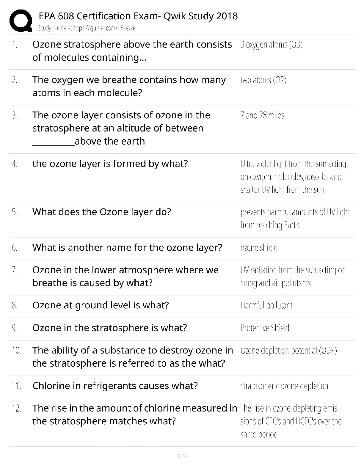 Emergency Preparedness & Management > QUESTIONS & ANSWERS > EPA 608 Certification Exam / Qwik Study 2018 Guide / 2025 Update / Score 100% (All)