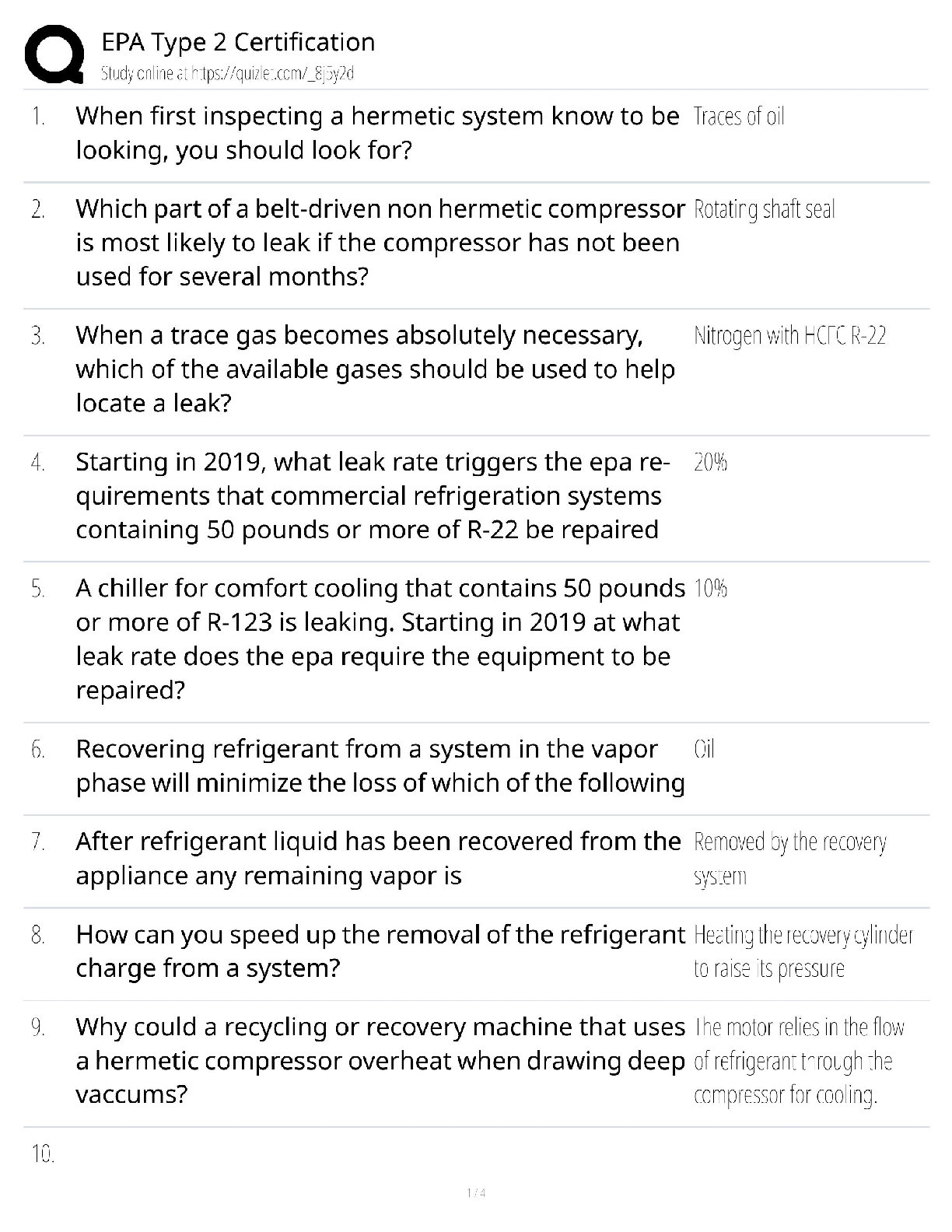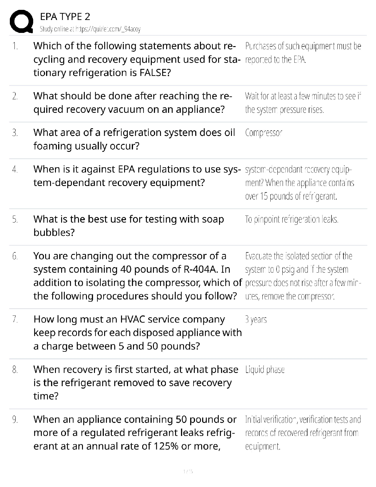 Emergency Preparedness & Management > QUESTIONS & ANSWERS > EPA Type 2 Certification / High-Pressure Appliances Exam / 2026 Update / Practice Test & Study Guide (All)