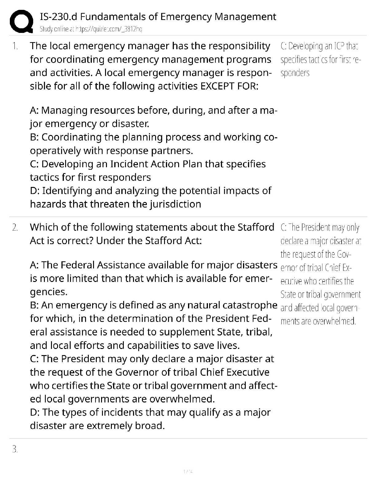 Emergency Preparedness & Management > QUESTIONS & ANSWERS > FEMA IS-230.d Test Bank / Fundamentals of Emergency Management / 2025 Update / Score 100% (All)
