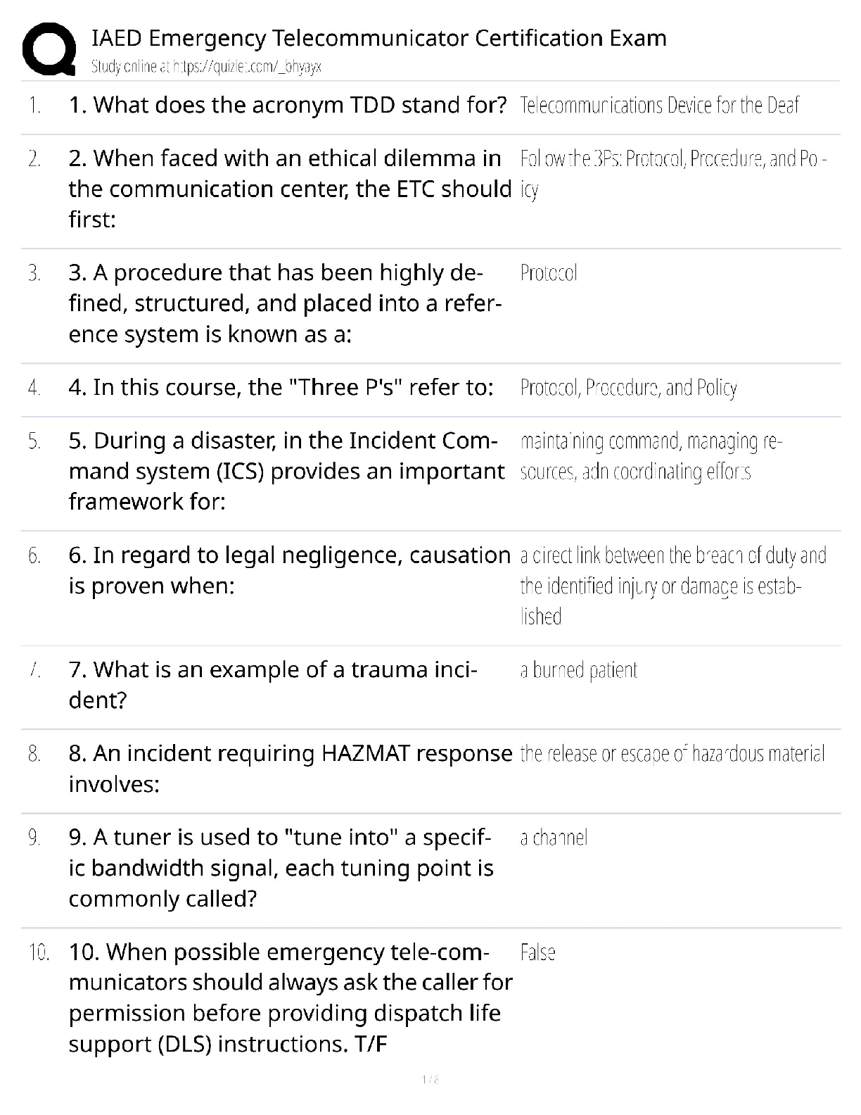 Emergency Preparedness & Management > QUESTIONS & ANSWERS > IAED Emergency Telecommunicator Certification Test Bank / Emergency Dispatch Exam / 2025 Update / Score 100% (All)