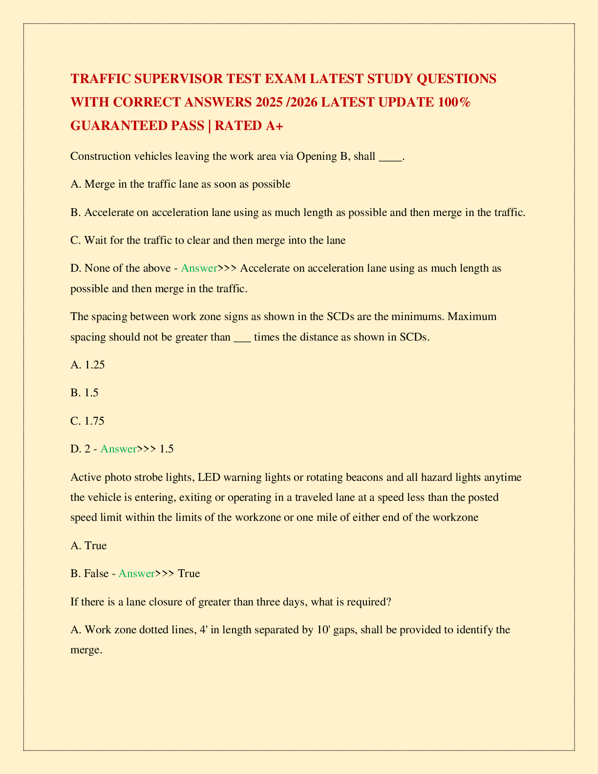 Safety Management > EXAM > TRAFFIC SUPERVISOR TEST EXAM LATEST STUDY QUESTIONS WITH CORRECT ANSWERS 2025 /2026 LATEST UPDATE 100% GUARANTEED PASS | RATED A+ (All)