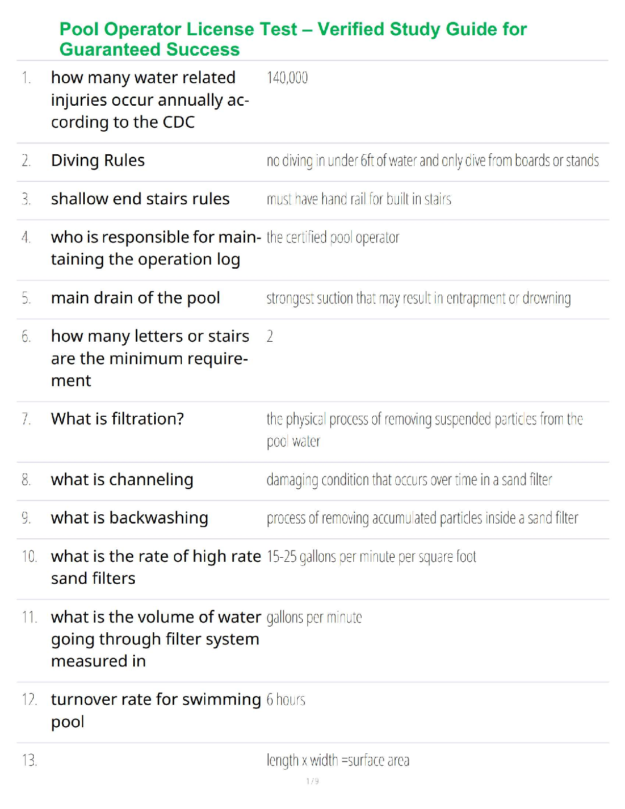 Safety Management > Test Prep > Pool Operator License Test – Verified Study Guide for Guaranteed Success (All)