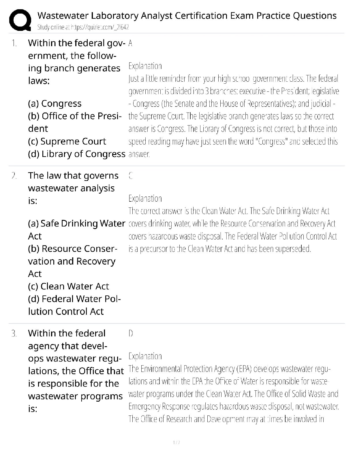 Safety Management > QUESTIONS & ANSWERS > Wastewater Laboratory Analyst Certification / 2025 Practice Exam / Score 100% Study Guide & Test Bank (All)