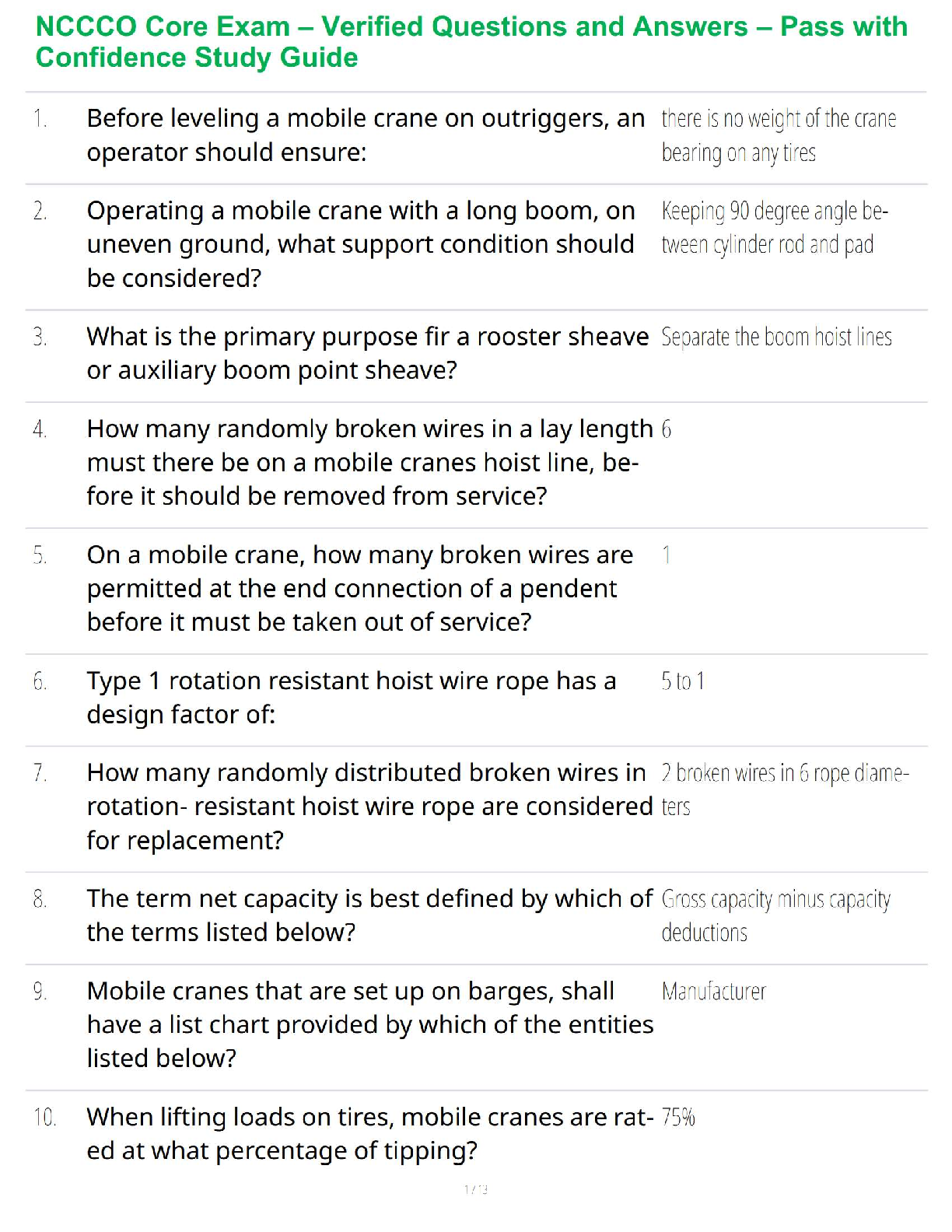Safety Management > STUDY GUIDE > NCCCO Core Exam – Verified Questions and Answers – Guaranteed Success Study Guide (All)