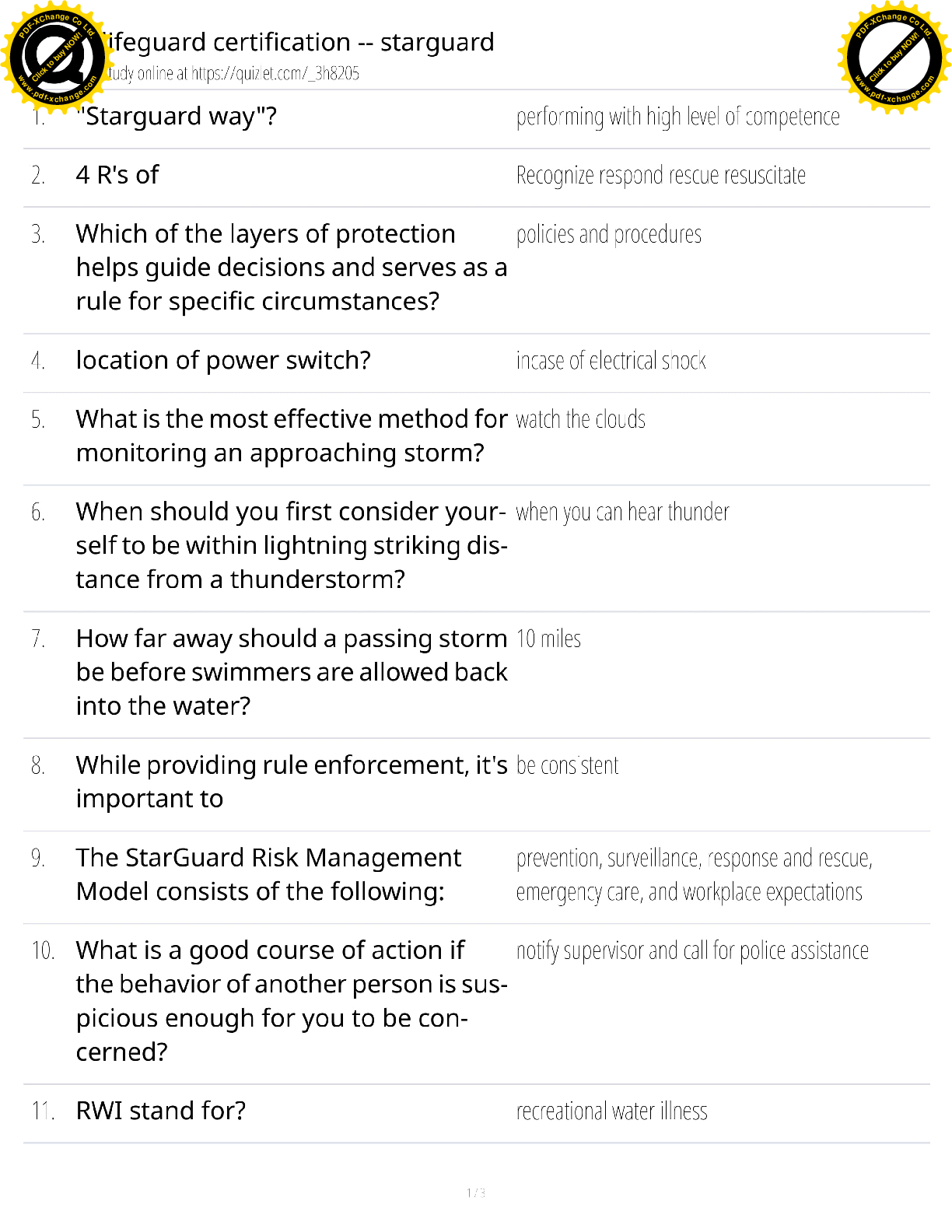 Safety Management > QUESTIONS & ANSWERS > StarGuard Lifeguard Certification / Practice Exam & Study Guide / 2025 Update / Score 100% (All)