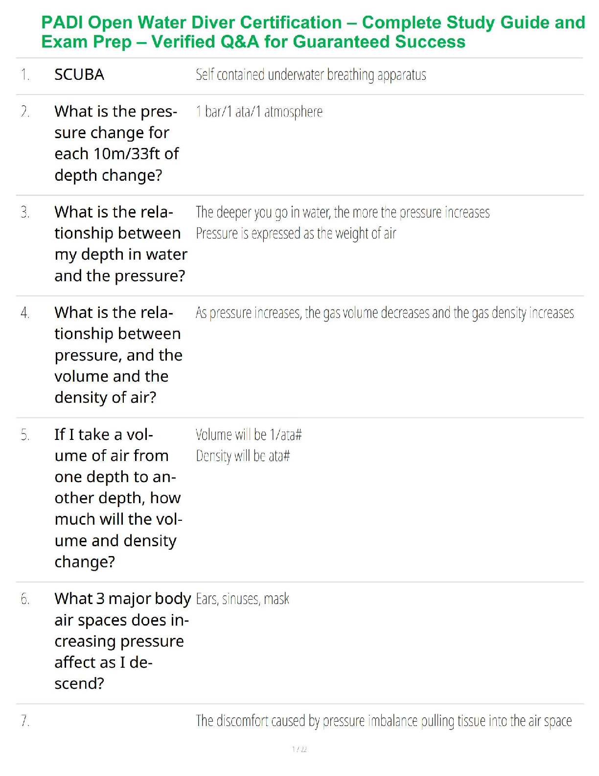 Safety Management > STUDY GUIDE > PADI Open Water Diver Certification – Complete Study Guide and Exam Prep – Verified Q&A for Guaranteed Success (All)