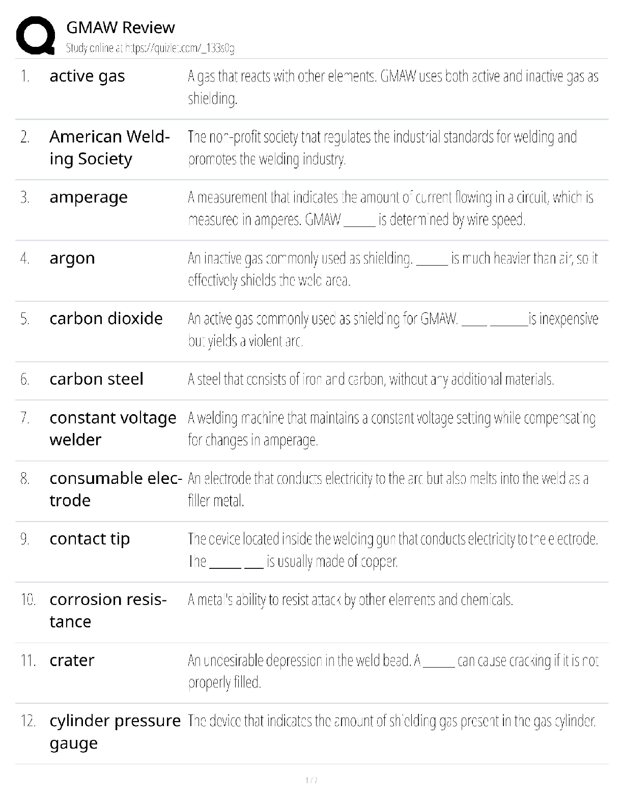 Safety Management > QUESTIONS & ANSWERS > GMAW Review Test Bank / Gas Metal Arc Welding Certification / 2025 Update / Score 100% (All)
