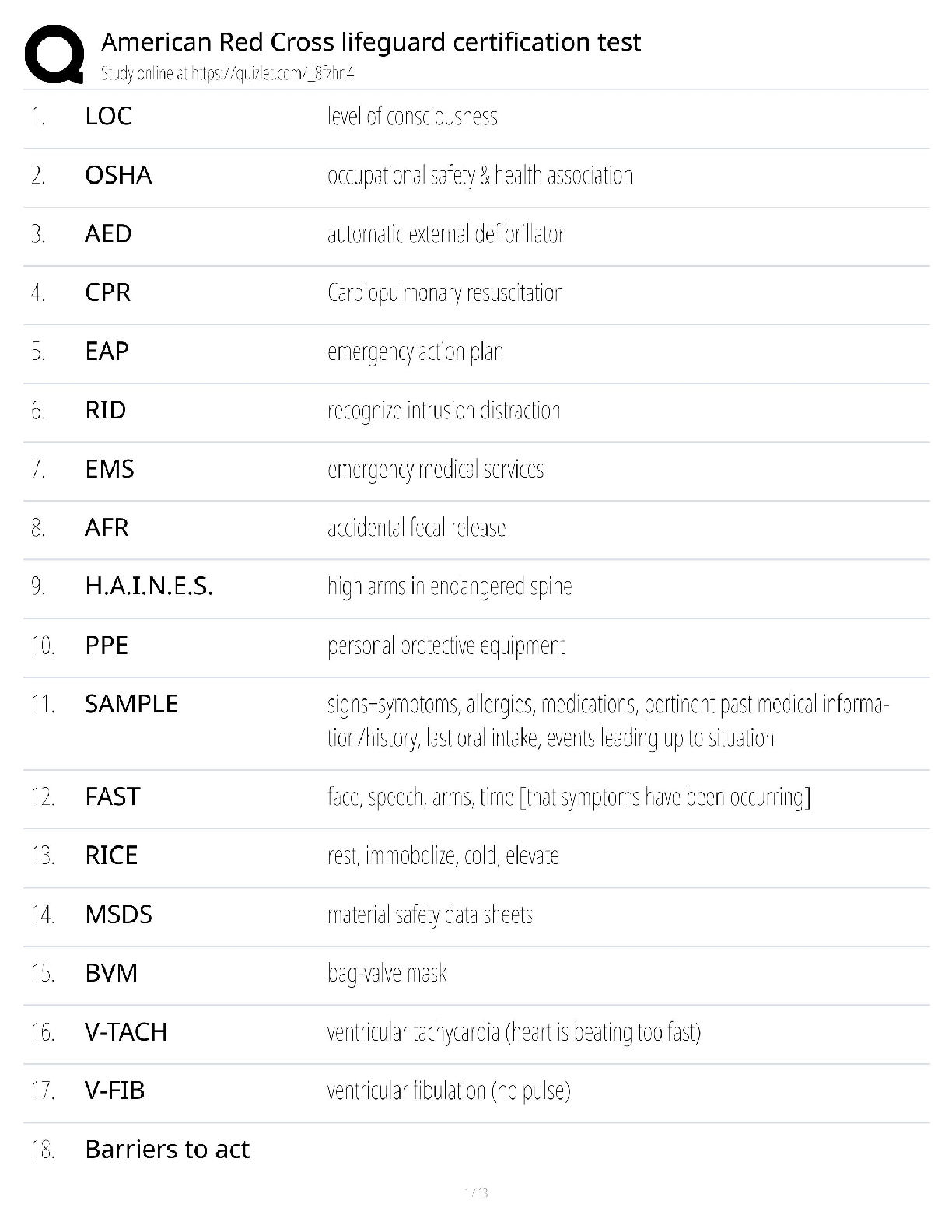 Safety Management > QUESTIONS & ANSWERS > Lifeguard Red Cross Acronyms Test Bank / Water Safety Certification / 2025 Update / Score 100% (All)