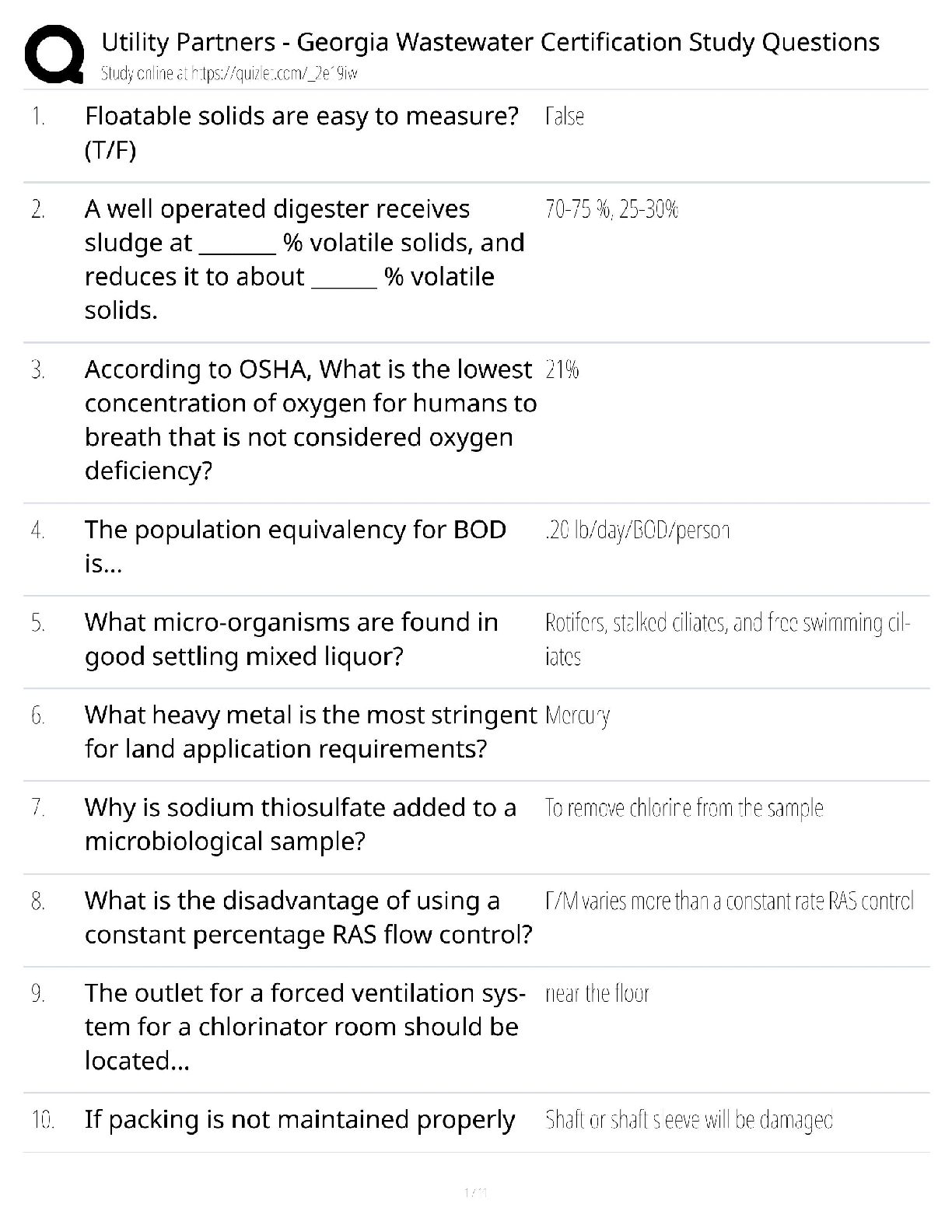 Safety Management > QUESTIONS & ANSWERS > Georgia Wastewater Certification Study Questions Test Bank / Utility Partners Exam / 2025 Update / Score 100% (All)