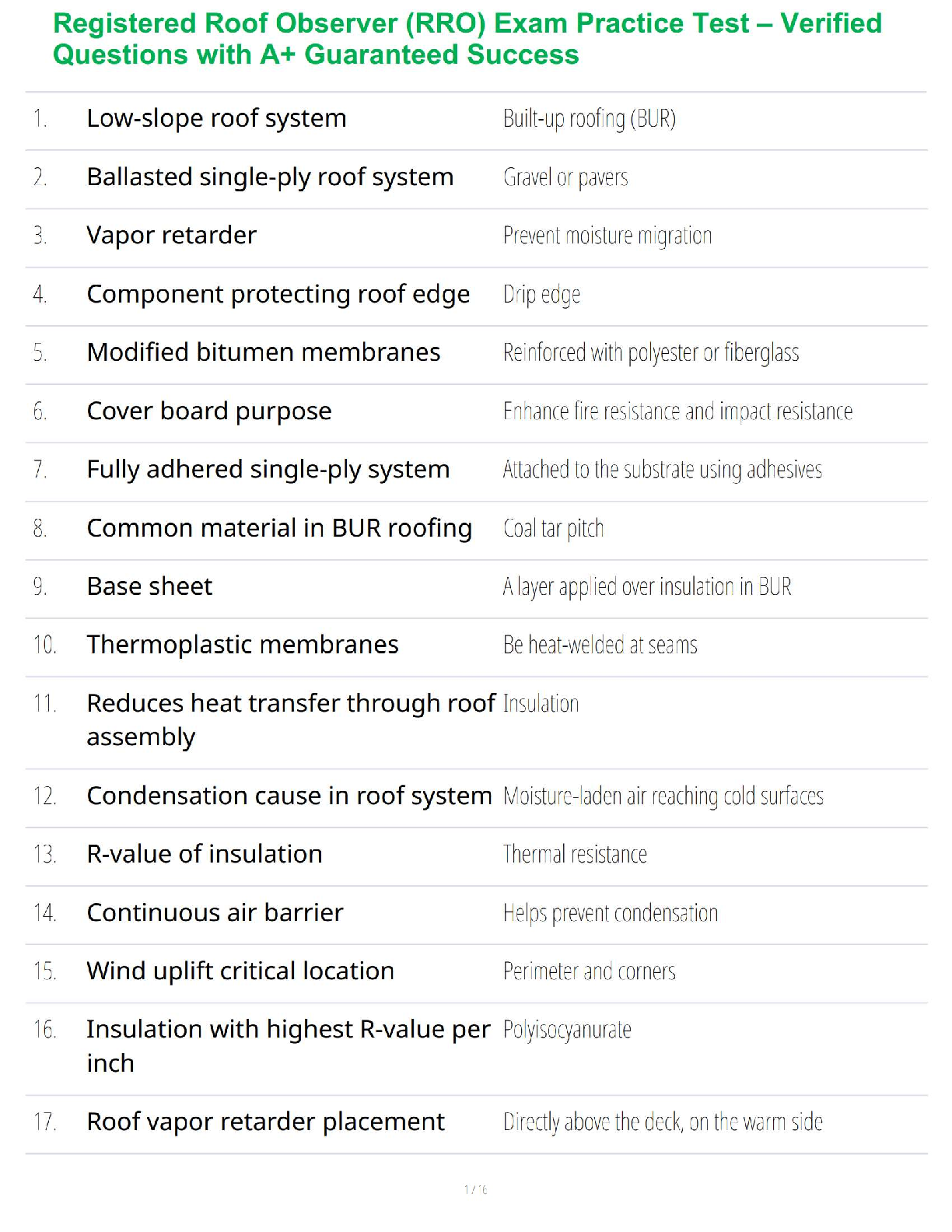 Safety Management > STUDY GUIDE > Registered Roof Observer (RRO) Exam Practice Test – Verified Questions with A+ Guaranteed Success (All)