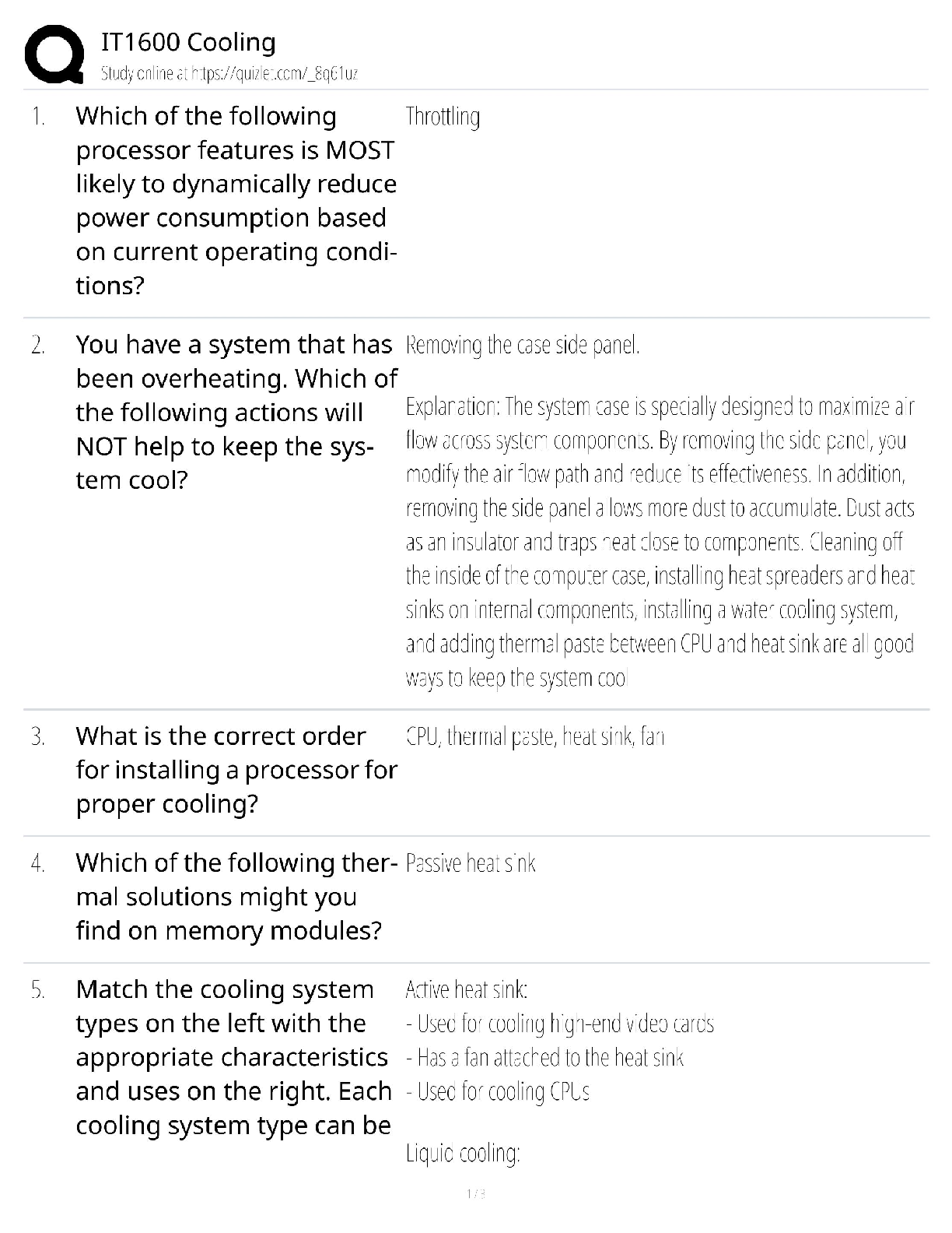 Safety Management > QUESTIONS & ANSWERS > IT1600 Cooling Systems / Data Center Cooling Exam / 2026 Update / Test Bank & Study Guide (All)