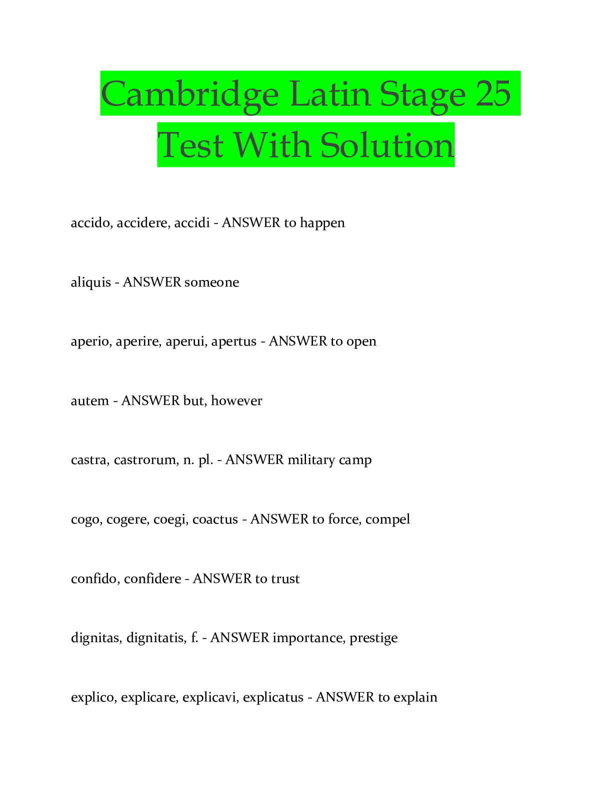 Linguistics > QUESTIONS & ANSWERS > Cambridge Latin Stage 25 Test With Solution (All)